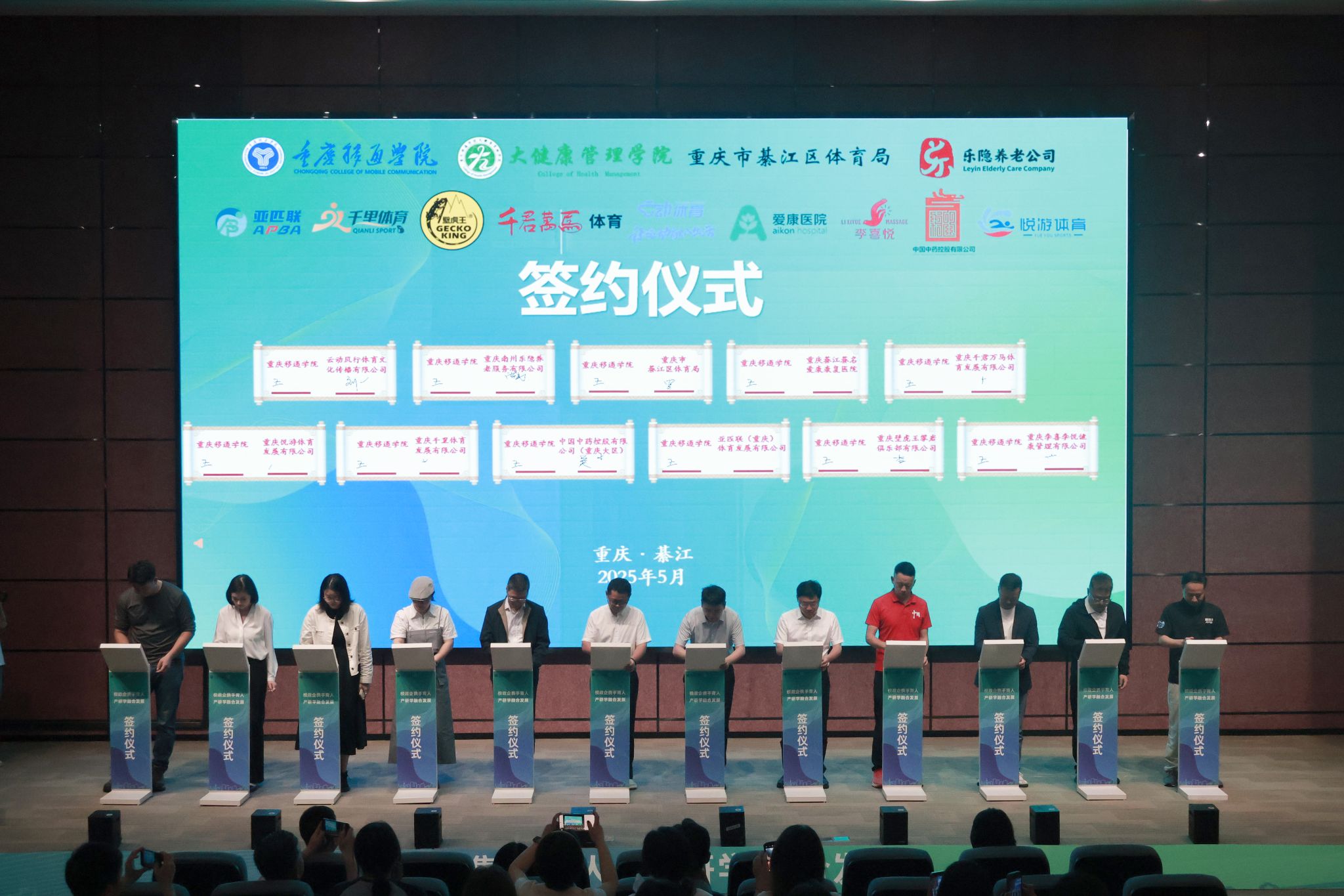 5月9日下午,重庆移通学院与重庆市綦江区体育局、重庆云动风行体育文化传播有限公司、重庆南州乐隐养老服务有限公司、重庆綦江綦名爱康康复医院等11家政企单位在贤者楼423多功能报告厅举行校企合作签约仪式。此次仪式作为该校历史上首个参与企业最多、合作领域最广的签约活动,标志着校政企三方在产教融合、协同育人领域迈出里程碑式的一步。合作将整合教育资源、产业需求与政策支持,共同培养适应大健康与体育产业发展的复合型人才,为区域经济高质量发展注入新动能。会议由重庆移通学院大健康管理学院院长杨瑜主持。