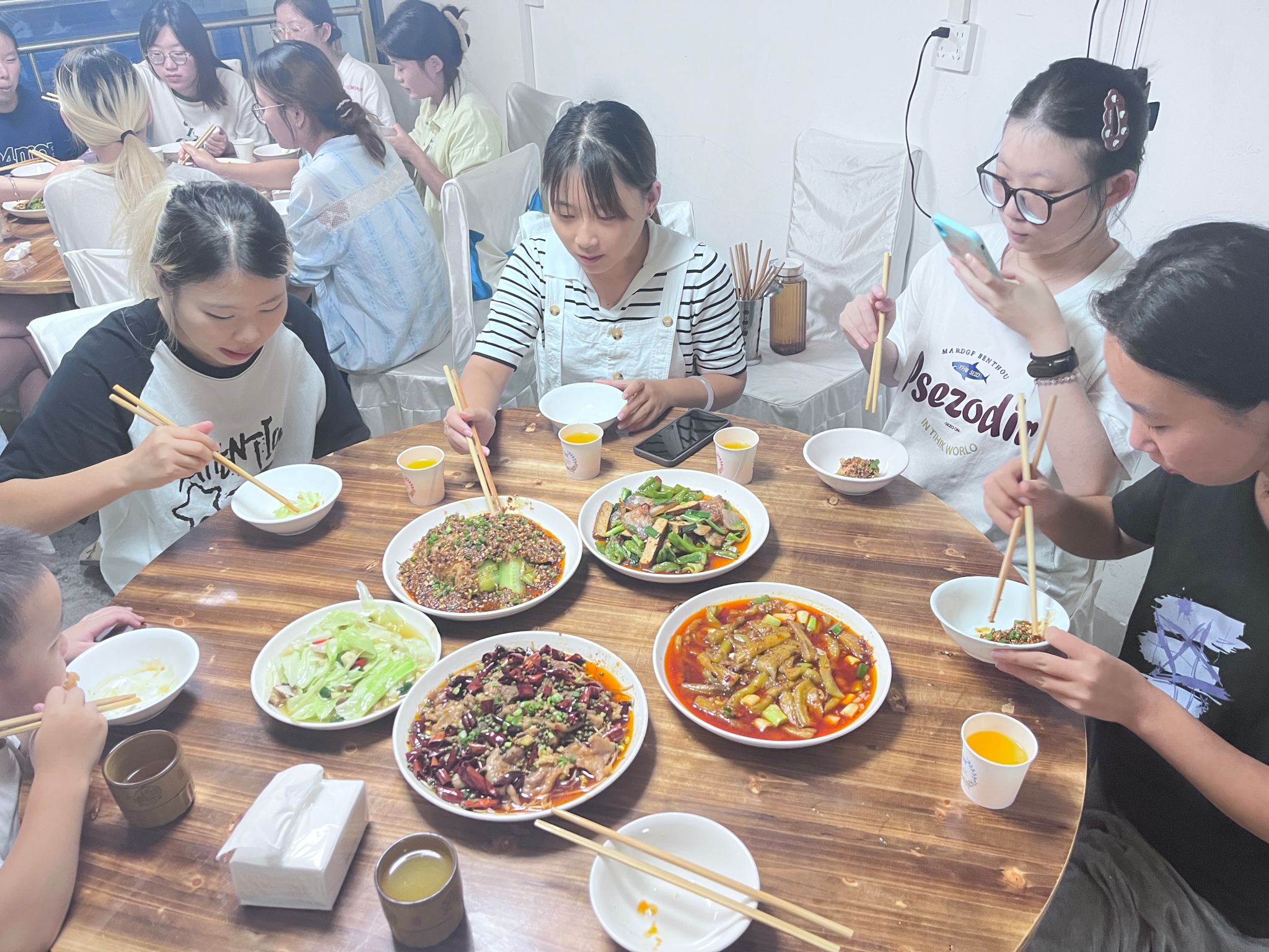 抵达饭店后,围坐在餐桌旁,面对可口的饭菜,交流的气氛更加热烈。董老师巧妙地以“饭桌”为课堂,在谈笑风生中自然切入关于学业规划、职业发展、人生价值等话题。她结合自身的求学与工作经历,分享经验与见解,引导同学们思考如何将专业知识与社会需求相结合,如何在不同学科交叉中找到自己的定位。同学们也纷纷敞开心扉,就自己关心的考研、就业、时间管理、人际关系等问题与董老师进行交流,董老师一一给予了耐心的解答和积极的鼓励。整个过程中,没有严肃的说教,只有真诚的倾听与平等的对话,思想的火花在轻松的氛围中悄然碰撞、升华。