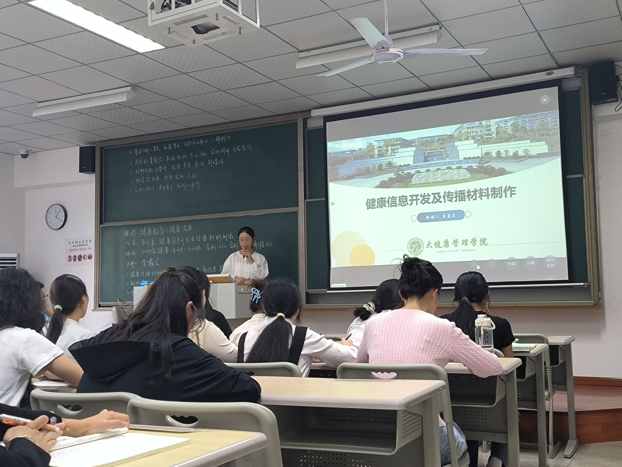 查鑫灵老师围绕“健康信息开发及传播材料制作”主题,系统讲解了健康传播材料的制作、健康传播材料的需求分析、健康信息收集与加工等课程内容。通过多媒体课件清晰展示各类健康传播材料的特点与适用场景,结合生动案例,详细讲解了健康传播材料的信息收集和制作。同学们认真听讲,积极思考,课堂氛围活跃。