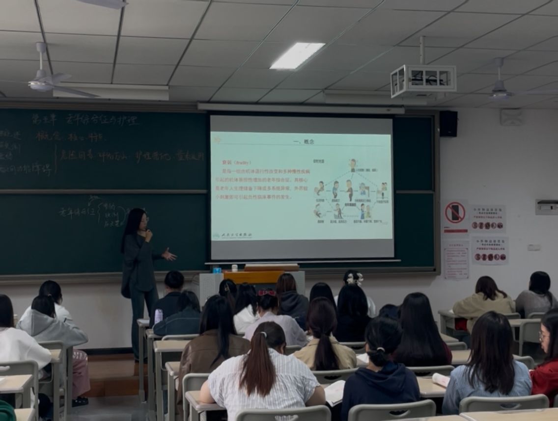 在理论讲授环节,教师围绕“老年常见健康问题护理”这一主题进行了系统讲解,通过清晰的逻辑结构和层次分明的教学内容,帮助学生构建知识框架,为后续的实践与应用打下基础。