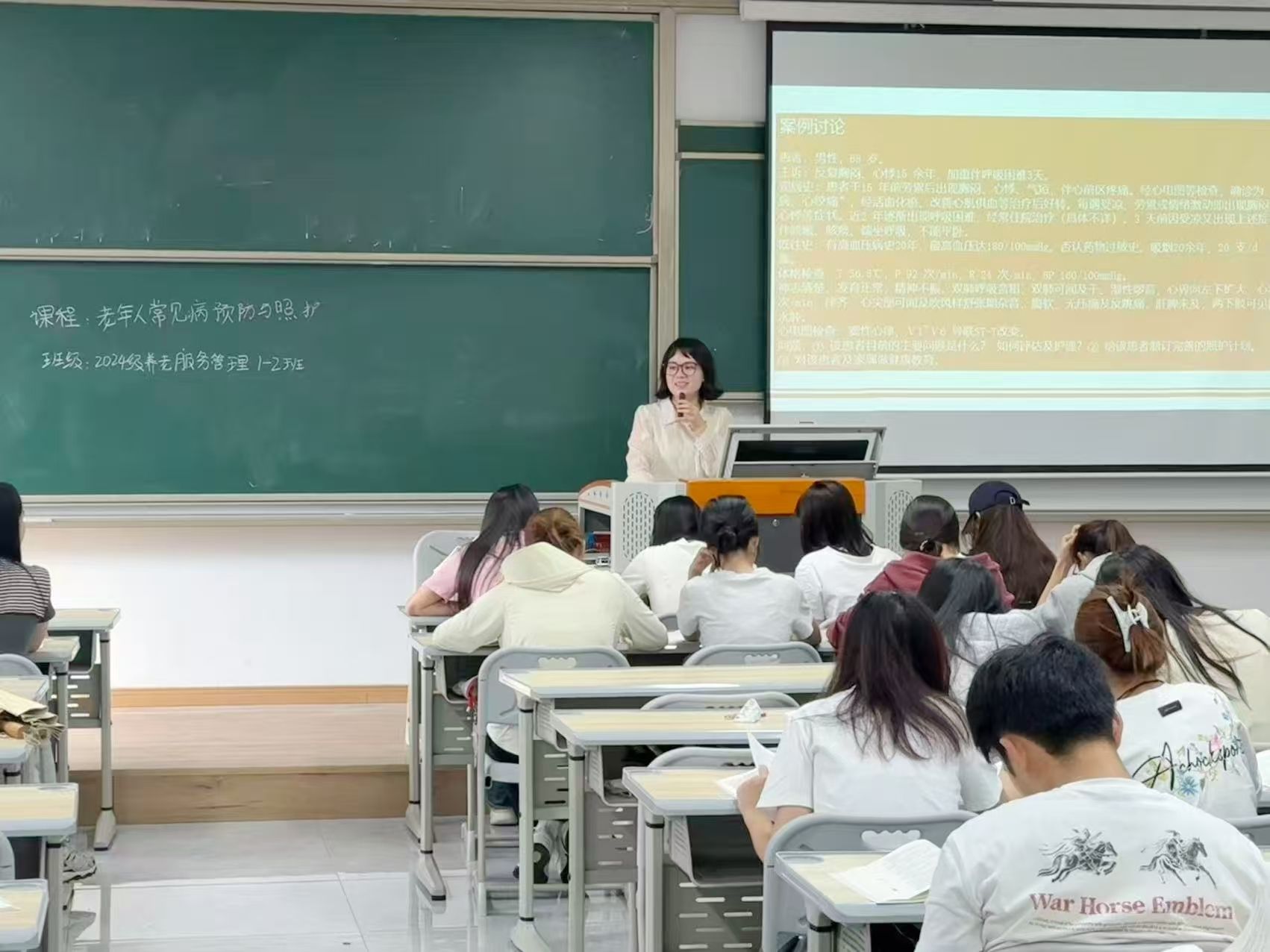 为深化课堂教学改革,提升老年照护领域教学质量,2025年10月16日,大健康管理学院龙现珍老师在行者楼408室开展《老年人常见病预防与照护》随堂磨课活动,郑媛媛、朱思琪以及田曌琪三位老师受邀参与听课与课后研讨。