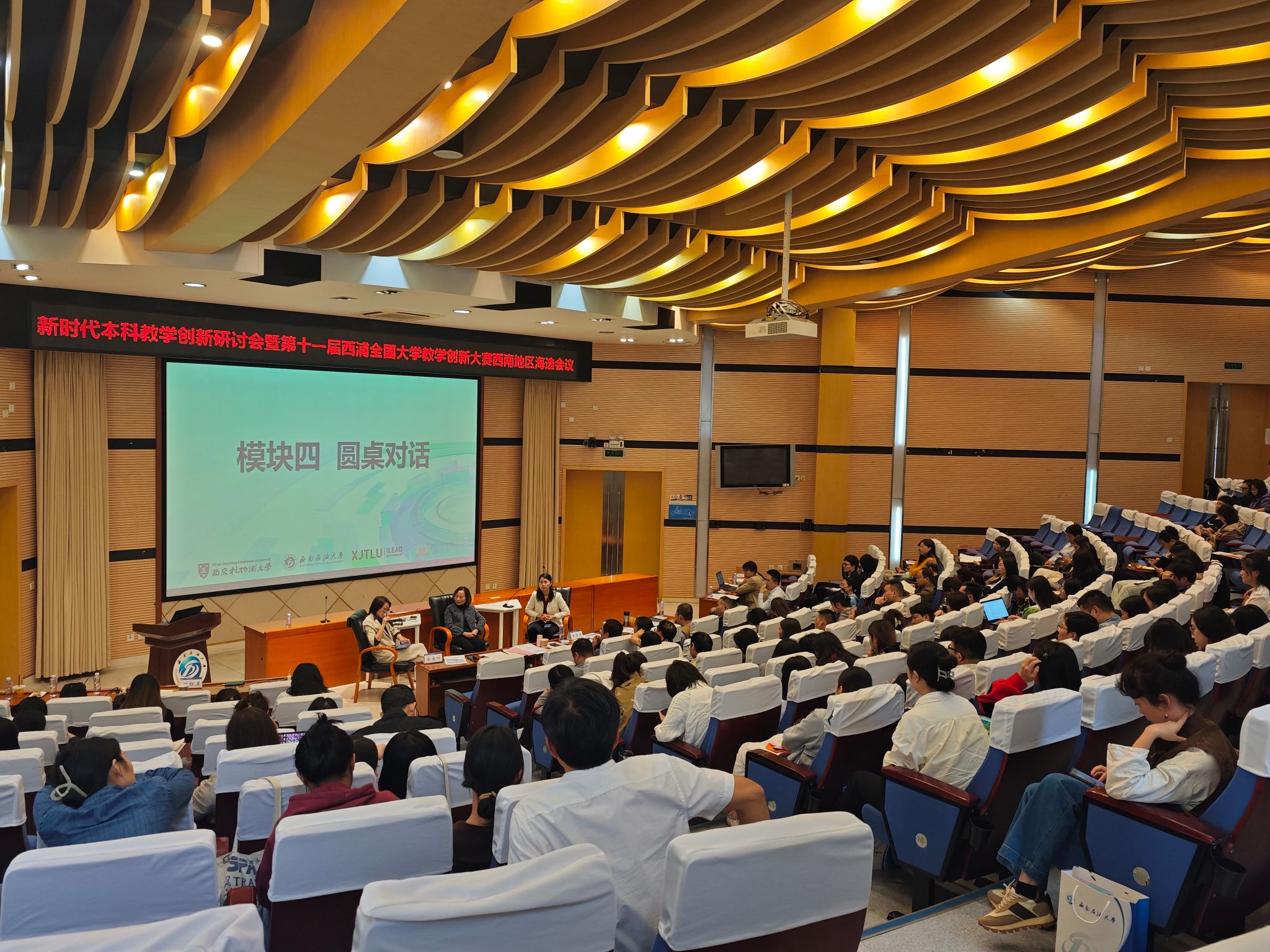 在案例分享与圆桌对话环节,三位西浦大赛获奖教师展示了教学创新案例与备赛经验,激发了参会教师的创新热情。此外,与会人员围绕“如何构建教育教学创新生态圈”的对话进一步明确:教学创新源于内在动力,需厚积薄发、持续积累。