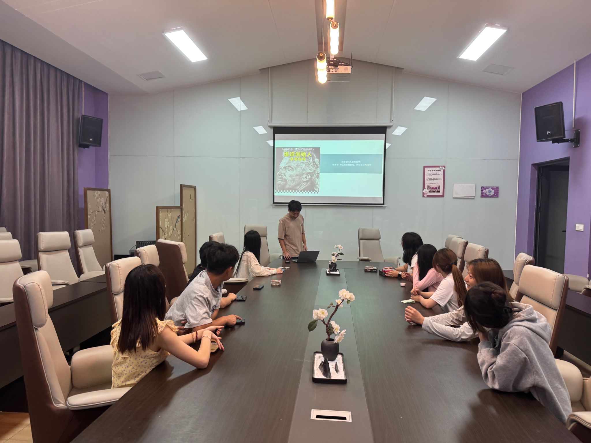 本次活动由桂豪杰同学进行介绍,他以布兰森的“人生高光时刻”为线索,通过动态PPT将这位“商业冒险家”的60年征程浓缩成一场视觉盛宴。从15岁辍学创办《学子》杂志的叛逆,到驾驶热气球横跨大西洋的生死挑战;从以4英镑创业基金撬动维珍帝国的商业奇迹,到71岁搭乘自家飞船遨游太空的终极冒险,每一个故事都如同一把钥匙,打开学生们对“可能性”的想象之门。