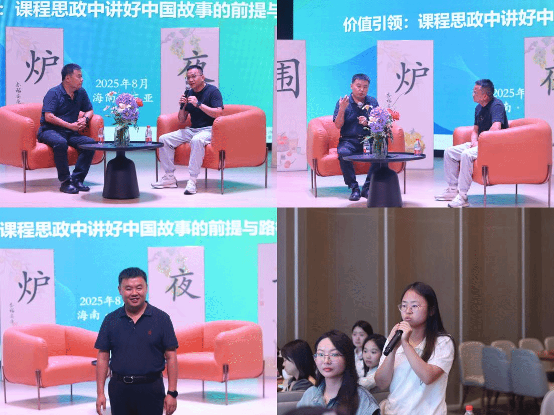 培训活动的尾声,由大健康管理学院专业负责人胡垚副教授主持的围炉夜话活动热烈开展,参会人员积极参与、畅所欲言,与秦教授就课程思政在教学实践中的具体应用展开了热烈讨论。张正予老师提出“如何在讲述思政故事的时候更好的与课程内容结合起来?”,对此,秦红雨教授认为,在课堂上,避免简单地在专业内容后贴一个“思政故事”的标签,结合的最高境界应是让专业知识和思政价值成为一个不可分割的整体,让学生在学习知识的同时,自然而然地感受其中地价值内涵和精神力量。