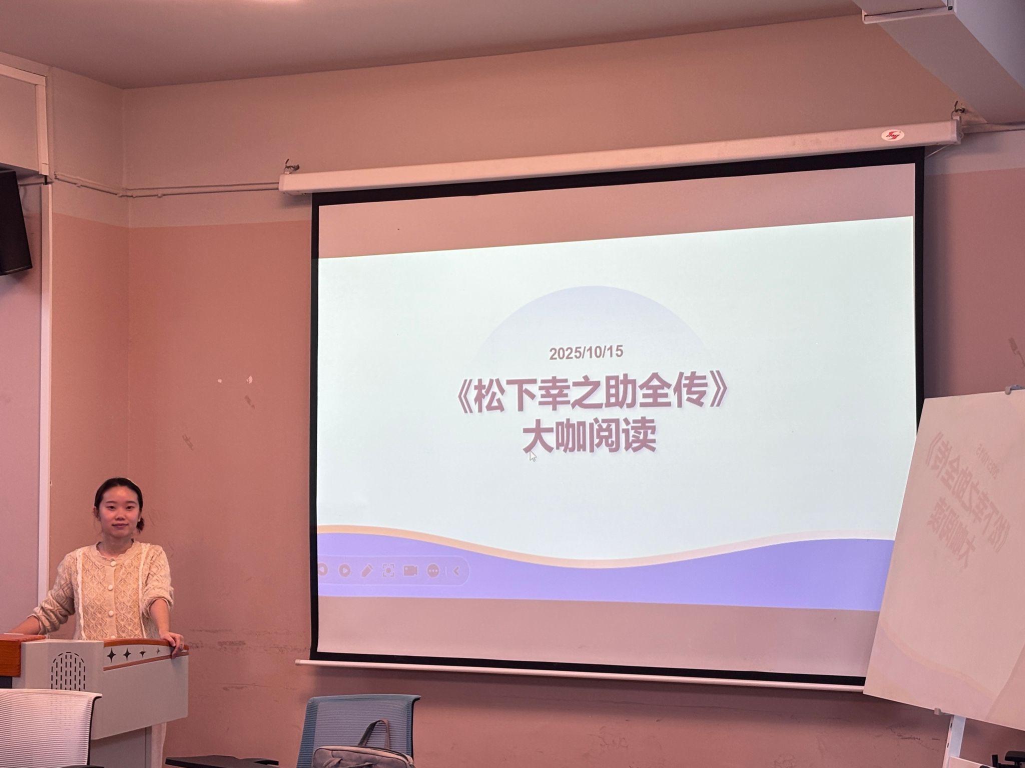 为引导学生从商界经典人物传记中汲取成长力量,拓宽专业视野与人生格局,2025年10月15日,张璐老师携手2024级体育经济与管理11-12班全体学生,在小石潭・多功能室共同开展《松下幸之助全传》大咖阅读分享活动,一场围绕“传奇商道与青春成长”的思想碰撞就此展开。