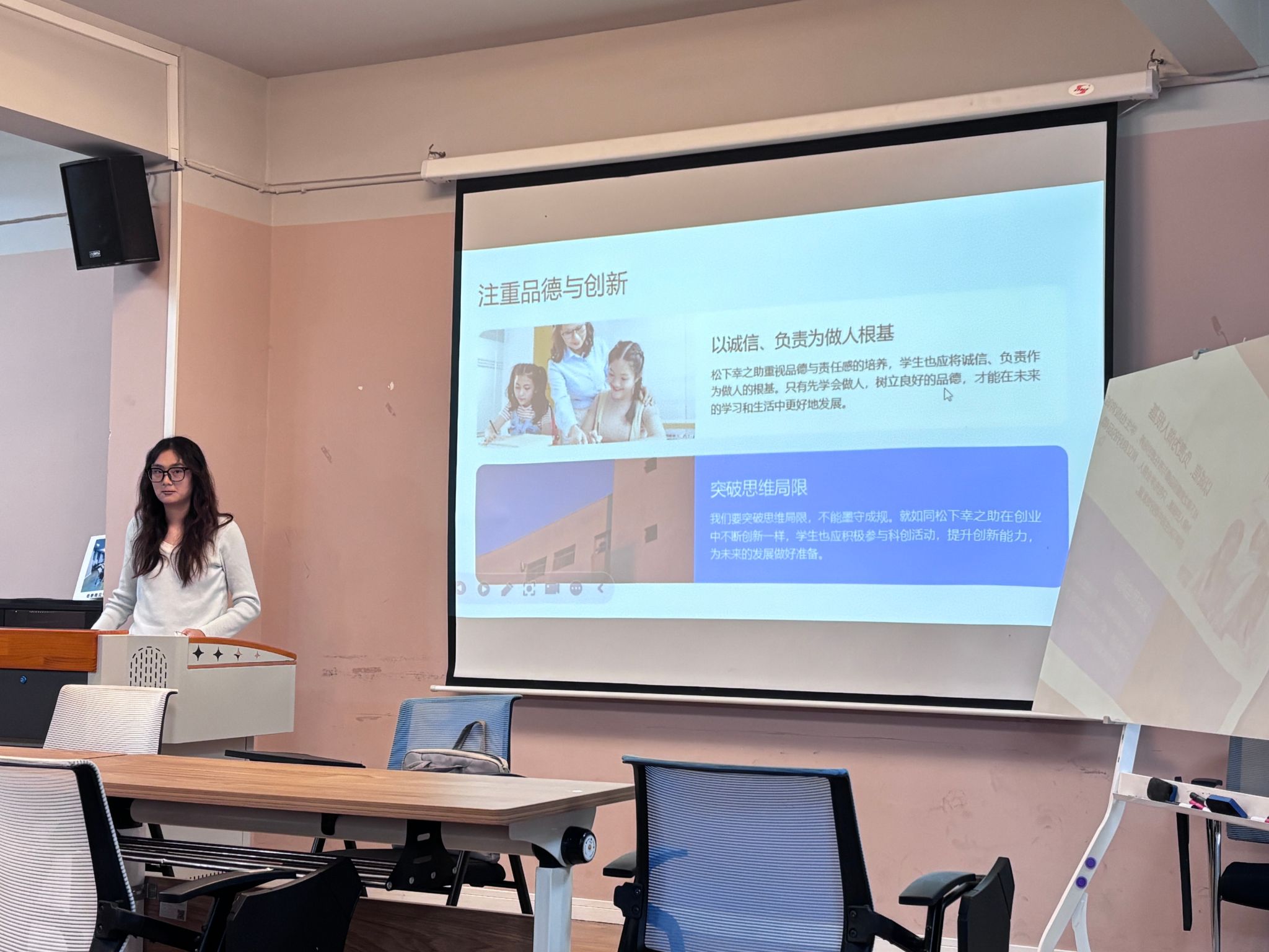 活动开场,张璐老师以“为什么在体育经济与管理专业的学习中,要读松下幸之助的传记?”为切入点,为现场学生搭建起“商业智慧”与“专业学习”的连接桥梁。张老师结合松下幸之助从学徒起步、历经多次创业挫折却始终坚守“经营即对人的关怀”理念的人生经历,深入浅出地剖析了传记中蕴含的三大核心价值:一是“困境中的韧性”,松下幸之助在经济寒冬中坚持技术创新、优化经营模式的故事,能为未来将投身体育产业的学生提供应对行业挑战的思路;二是“用户至上的理念”,其“了解消费者需求,比推销产品更重要”的经营哲学,与体育经济领域中“以用户为中心的赛事运营、体育服务设计”高度契合;三是“长远的格局观”,松下集团从电器制造拓展至多元产业的战略布局,对学生理解体育产业与其他领域的融合发展具有重要启发。张璐老师的分享既有对传记内容的深度解读,又紧密结合学生专业学习与未来职业发展需求,迅速点燃了现场学生的交流热情。