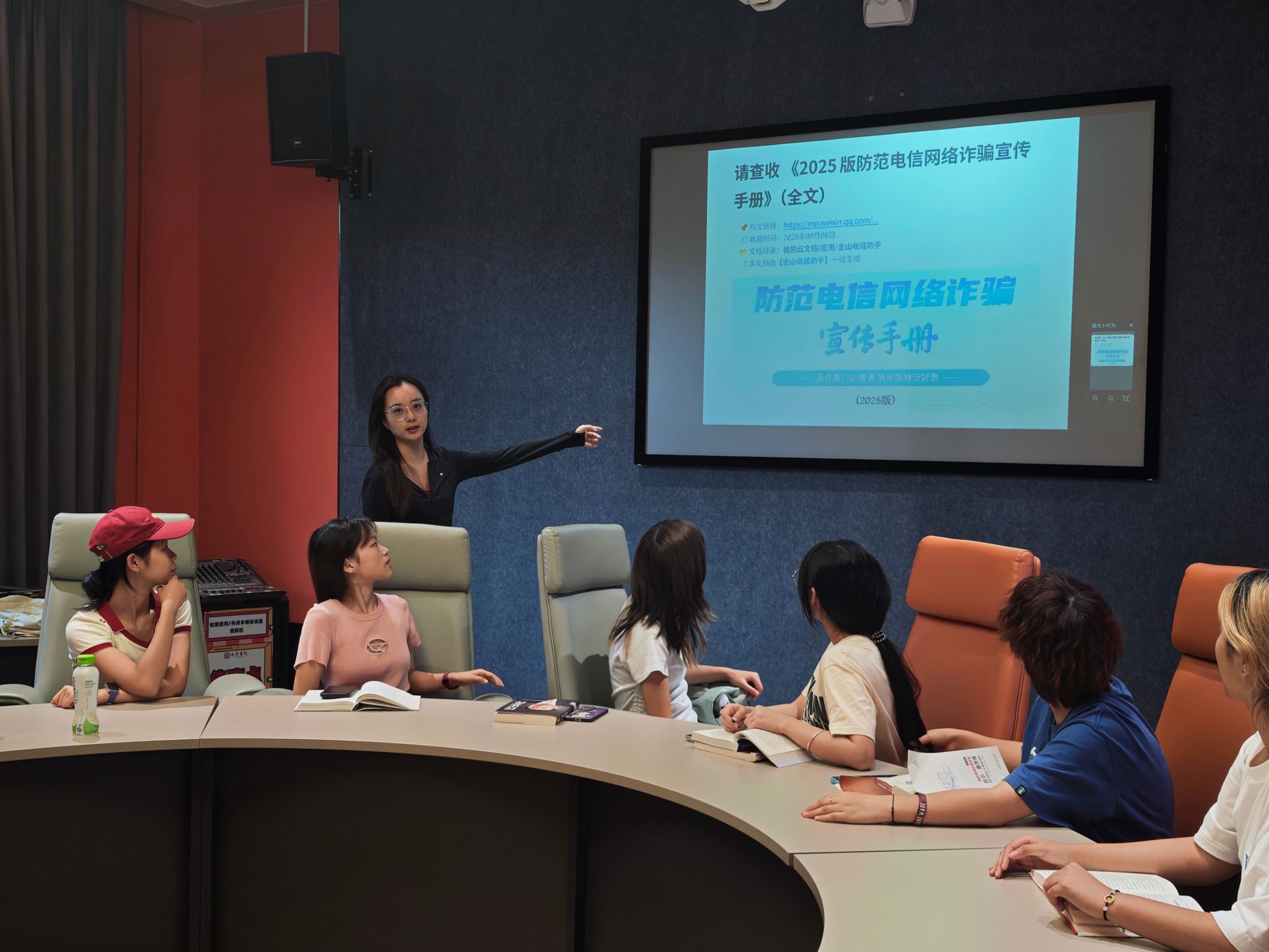 活动开始后,朱敏老师以近期高校学生遭遇电信网络诈骗的典型案例为切入点,提醒同学们保持高度警惕。她指出,诈骗手段不断翻新,学生群体由于社会经验不足,极易成为诈骗目标。她强调:“防诈不是一堂课的学习,而是一种必须长期培养的安全意识。要时刻绷紧‘反诈防线’,从源头上守护好自己的财产安全。”