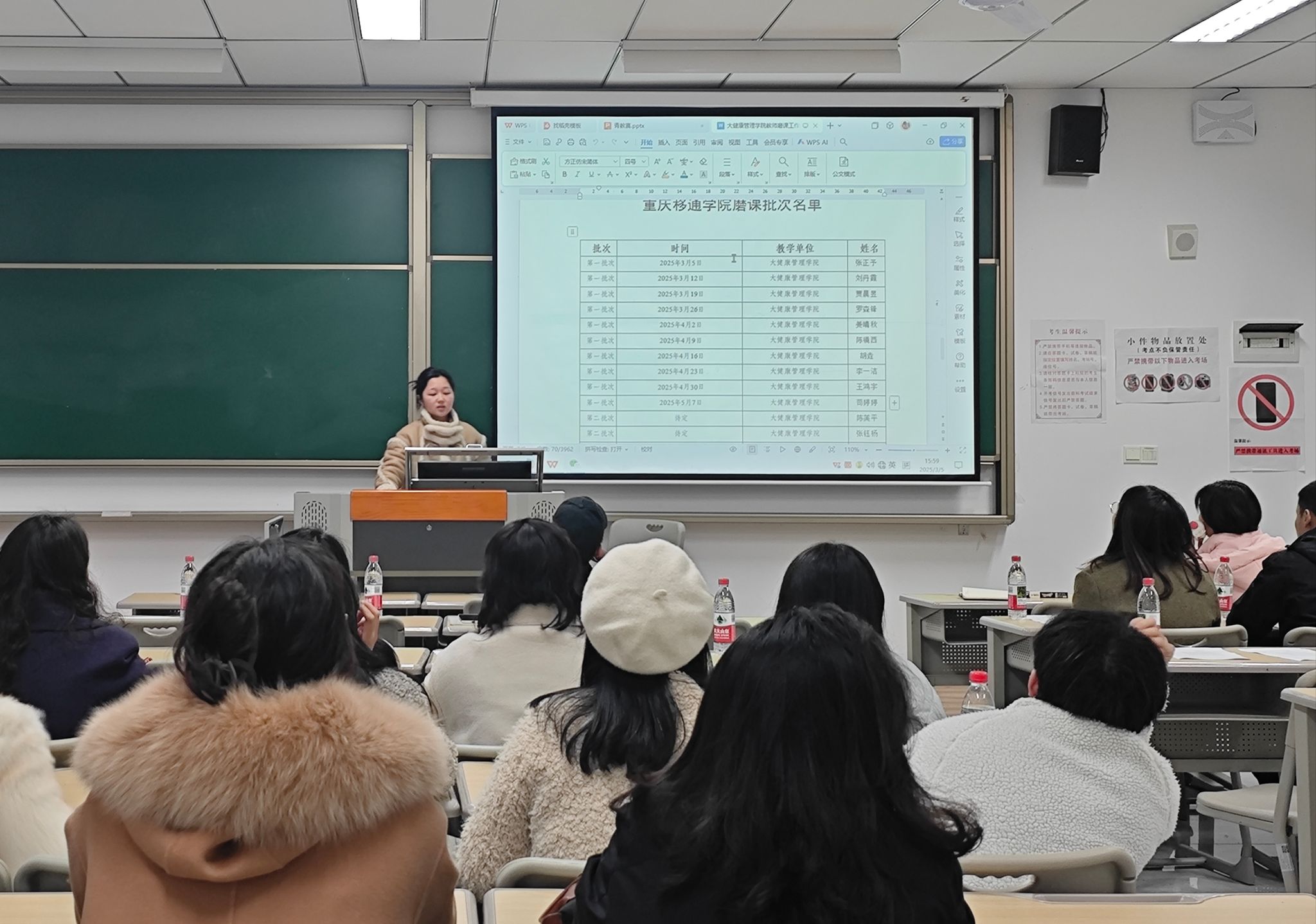 2025年3月5日,大健康管理学院教师磨课活动在行者楼202教室顺利开展。教研室主任姜晴秋、副教授胡垚,竞技体育中心八名教师以及大健康管理学院全体专任教师参加了此次活动。本次磨课旨在通过教学展示和点评交流,提升教师教学水平,打造优质课堂,促进教师间的学习与成长,为学院教学质量的全面提升奠定坚实基础。