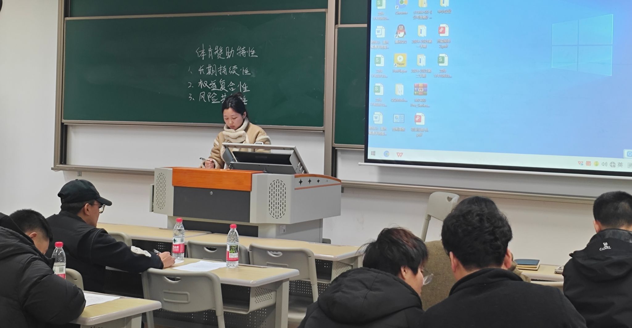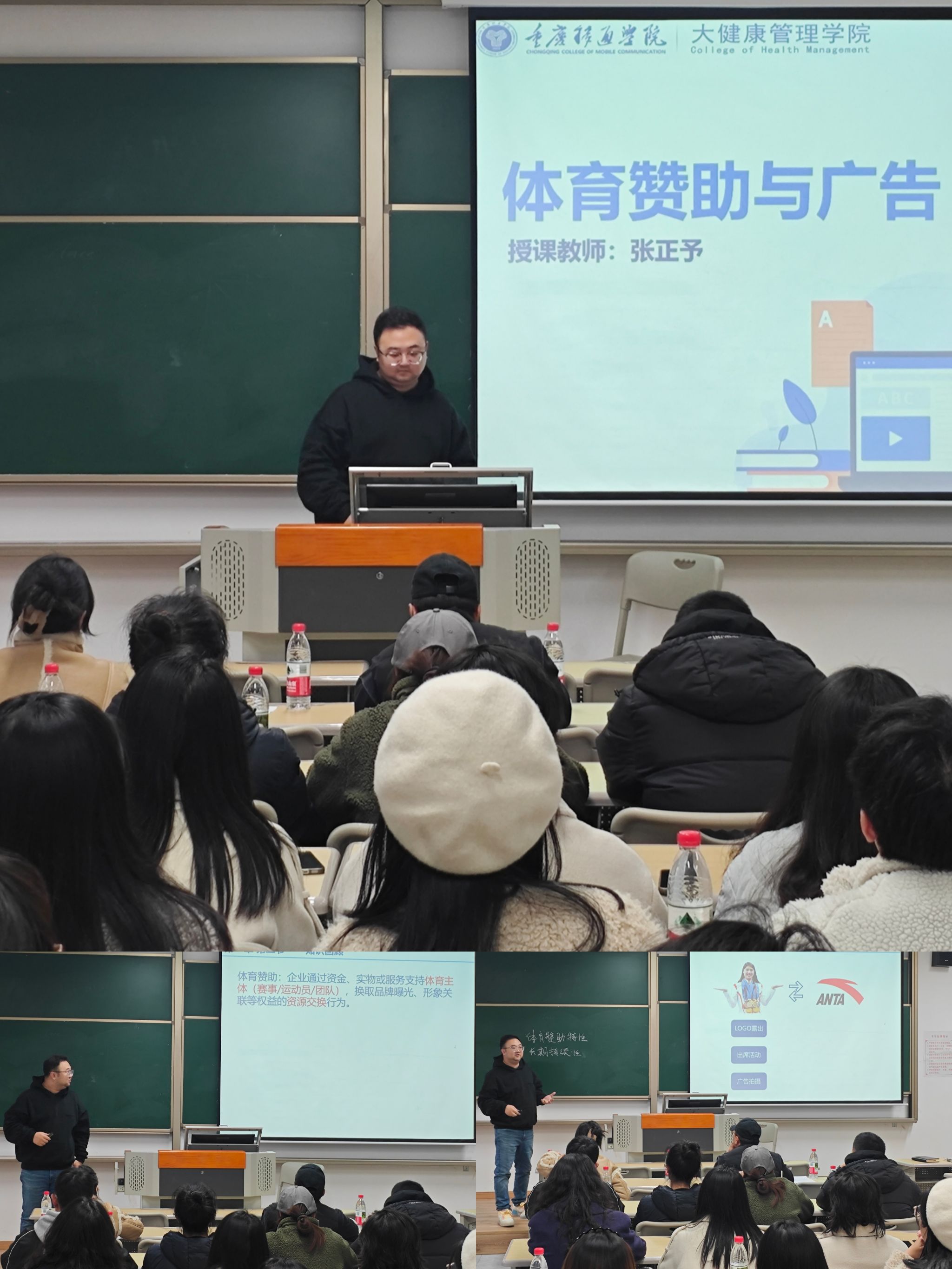 随后,张正予老师进行了精彩的授课展示。他以“体育赞助的特性”为主题,深入浅出地讲解了体育赞助的长期持续性、权益复合性和风险共生性三个特性。张老师在教学过程中引入了丰富的案例,例如安踏通过长期赞助国家队提升品牌价值的成功经验。这些案例生动形象,贴近实际,极大地激发了学生的学习兴趣。