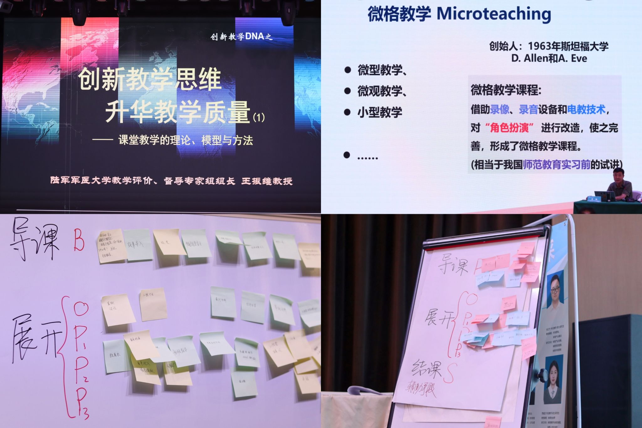 培训活动分为三个板块:一、王振维教授以“创新教学思维,升华教学质量”为题的专题授课;二、李懿教授、闫晶晶博士以“提升教师技能与学生体验的深度探索”为题的微格教学实战演练;三、林毅院长、杨瑜院长主持的以“探索创新教学模式”为题的围炉夜话。