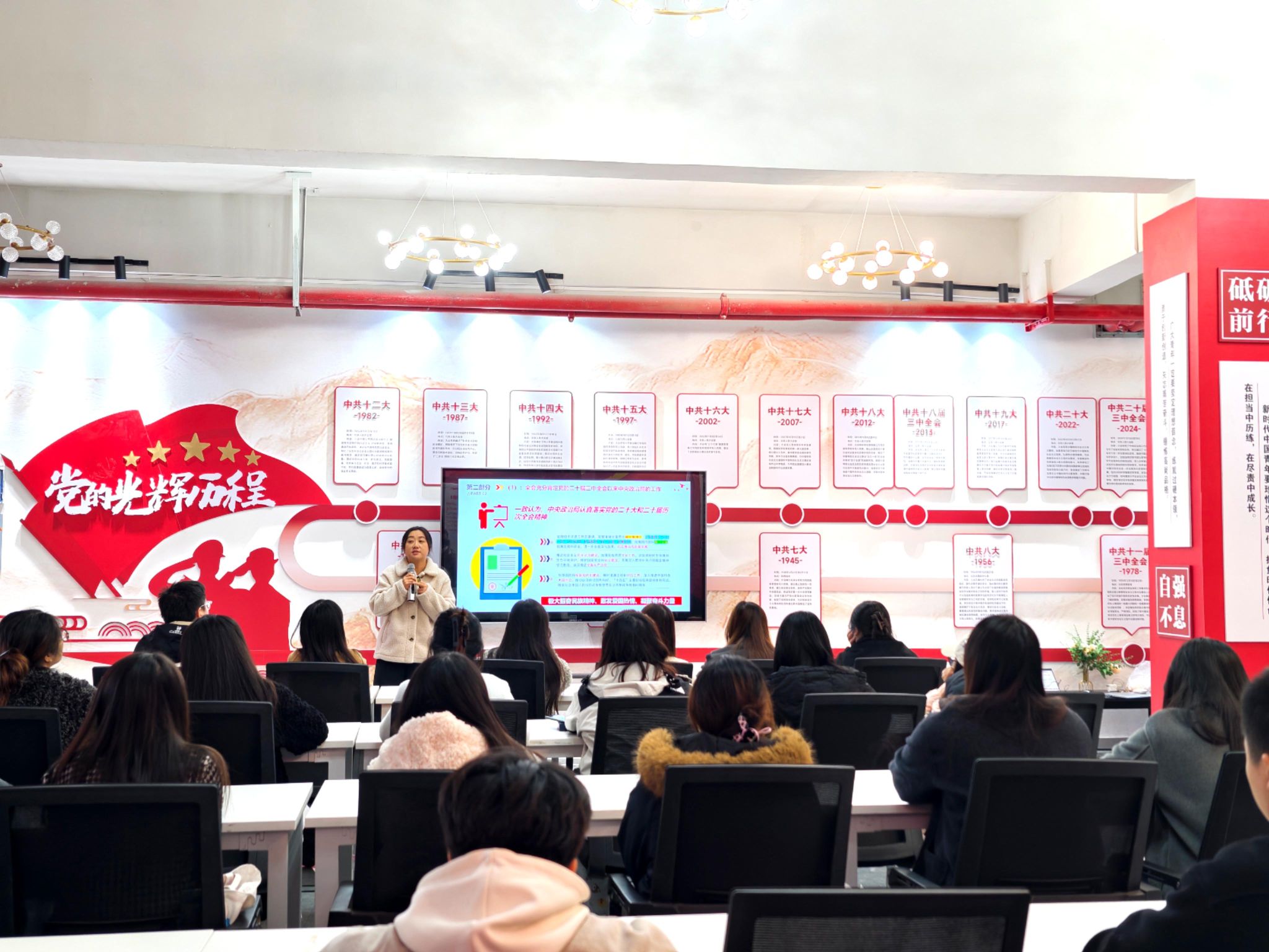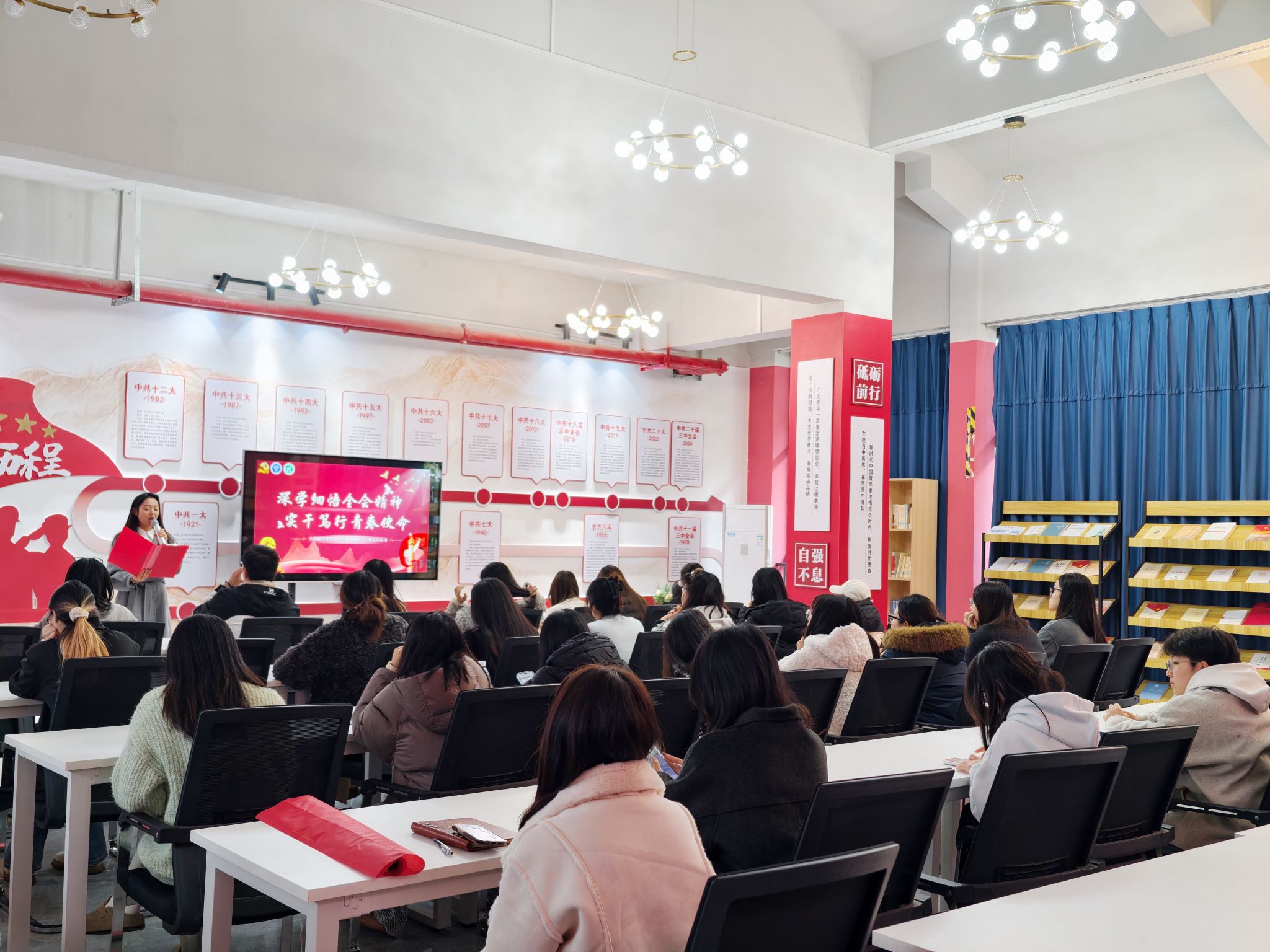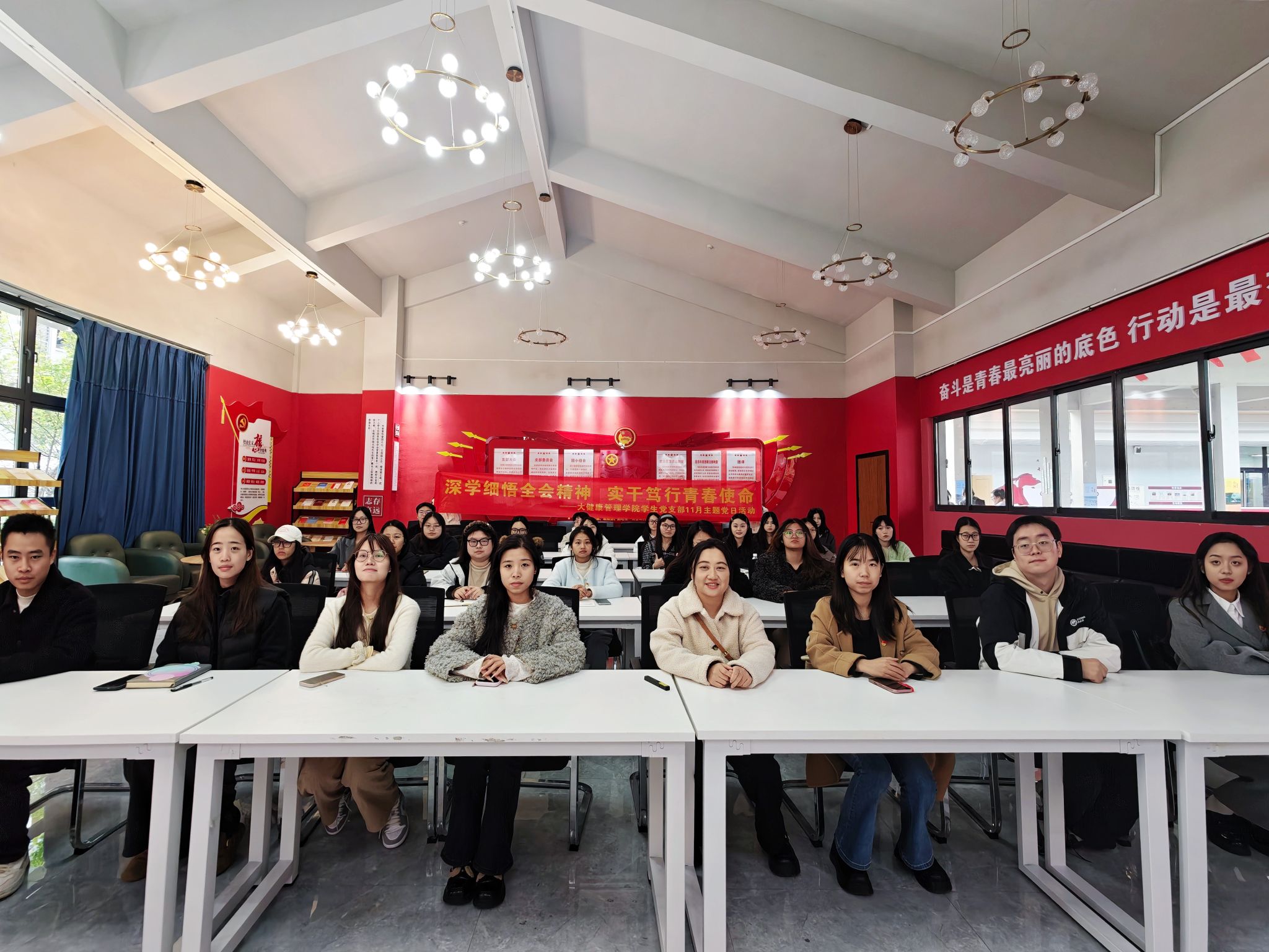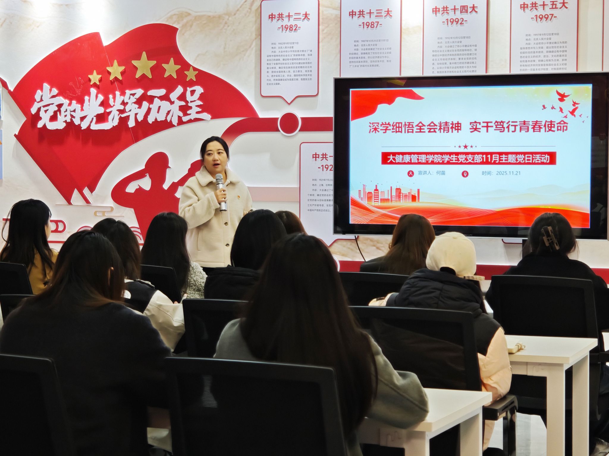 为深入学习贯彻党的二十届四中全会精神,引导青年党员坚定理想信念、勇担时代使命,2025年11月21日,大健康管理学院学生党支部在綦河书院党团活动室组织开展了“深学细悟全会精神,实干笃行青春使命”主题党日活动。本次活动特邀马克思主义学院何苗老师进行专题讲解。