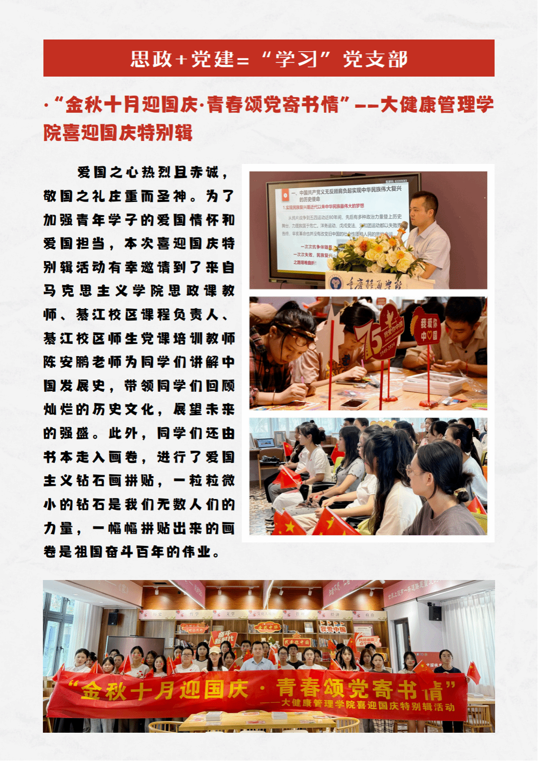 上一条:完满党建 | “承红色基因铸魂·启研学之旅逐梦”——大健康管理学院十月特辑研学活动