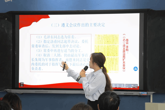 田常青同学用生动的讲述引领同学们穿越时空,回到了那个烽火连天的年代。她详细回溯了遵义会议的历史背景,援引《中共中央关于党的百年奋斗重大成就和历史经验的决议》中的权威论断,深刻阐述了遵义会议的重大意义。她通过鲜活的历史细节和栩栩如生的人物故事,让同学们深刻感受到了遵义会议在挽救党、挽救红军、挽救中国革命进程中的关键作用。