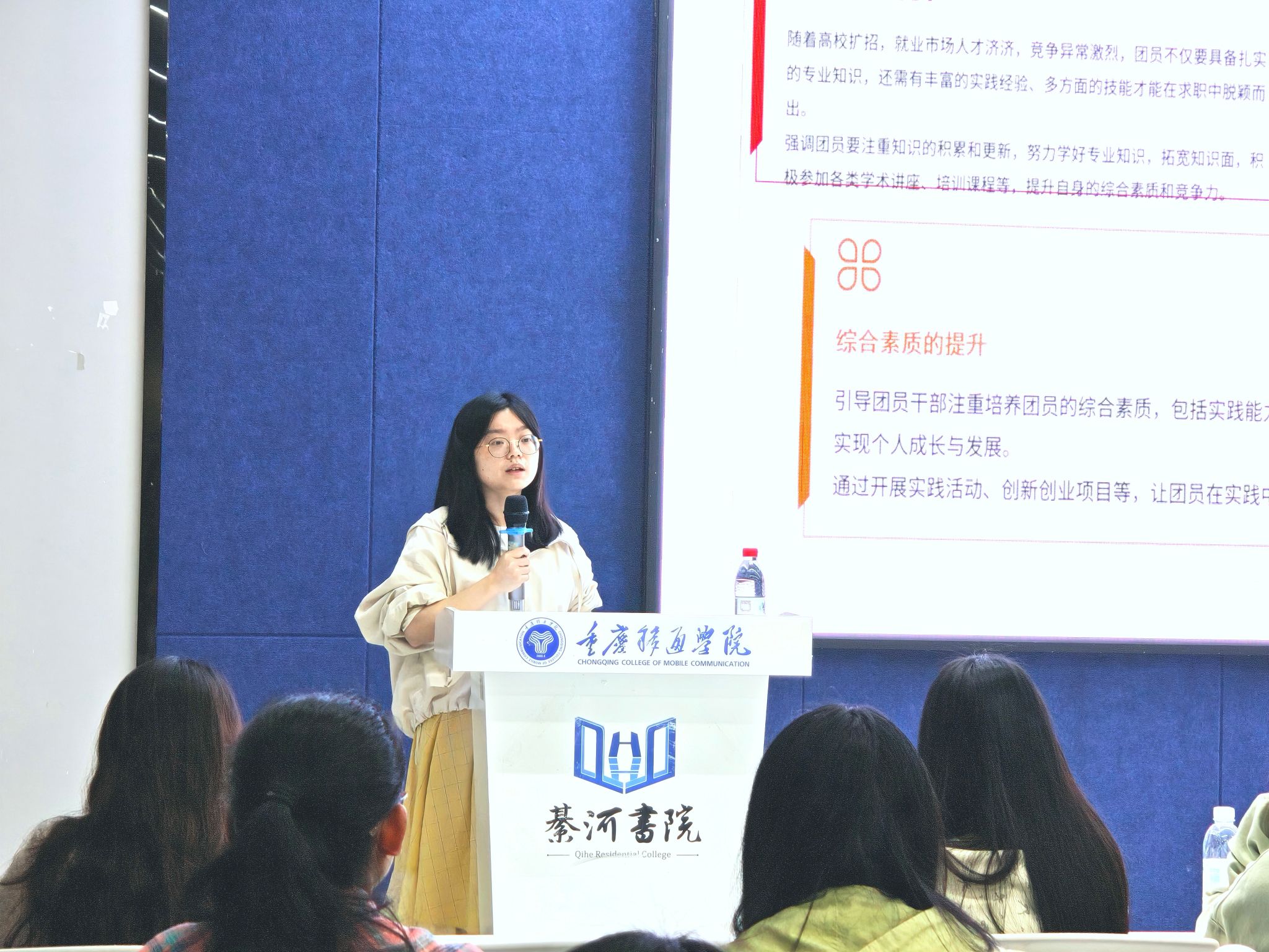 为积极响应学校提升团干部领导素养的号召,推动团组织的整体进步与发展,大健康管理学院于4月24日在綦河书院二号楼观涛·多功能报告厅举办了“把准时代新脉搏·引领青年心方向”——大健康管理学院“星火计划”第三季团干部专题理论培训第九期。本次活动特邀马克思主义学院卫峥妮老师作为主讲嘉宾,助力团干部们在新时代浪潮中找准方向、担当使命。
