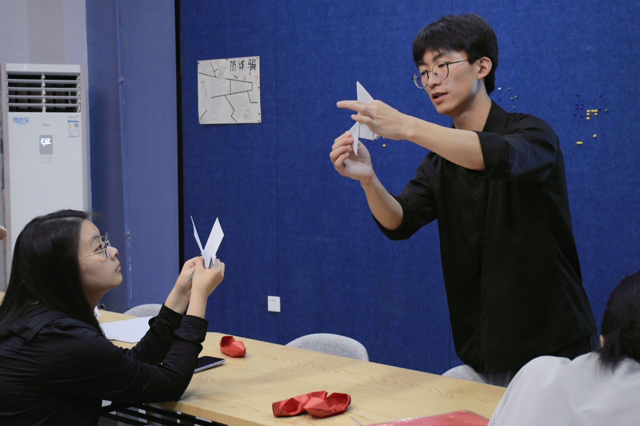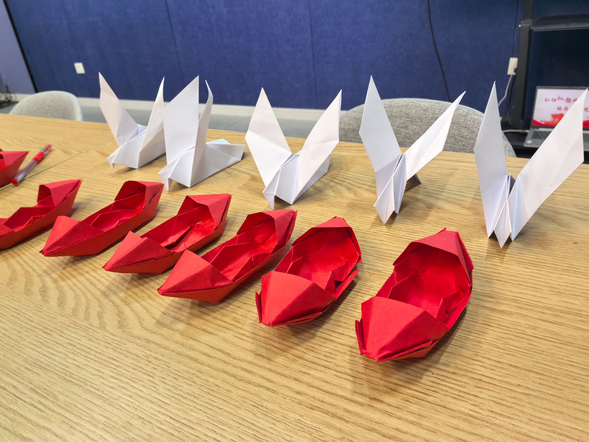 活动的最后,同学们将红船与和平鸽的折纸作品并列展示,寓意着“从建党初心到和平盛世”的跨越与传承。这一刻,历史与现实交汇,革命先辈们的英勇事迹与当代青年的使命担当共鸣。此次红色文化折纸活动,不仅是一次艺术创作的盛宴,更是一次心灵的洗礼。它以独特的方式,让同学们在动手实践中感受红色文化的独特魅力,激发了强烈的爱国情怀与使命担当。“士不可以不弘毅,任重而道远”,我们肩负着实现中华民族伟大复兴的历史使命,必须勇往直前。