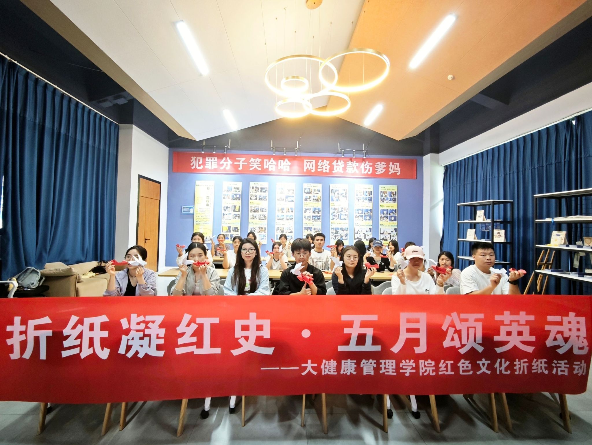 “以纸为媒,传红色基因;以艺载道,颂英魂精神。”为弘扬红色文化,传承革命精神,大健康管理学院于5月28日,在綦河书院二号楼南渊·创写活动室成功举办了“折纸凝红史·五月颂英魂”——大健康管理学院红色文化折纸活动。为同学们搭建起一座连接历史与现实的桥梁,让红色基因在新时代焕发出更加璀璨的光芒。
