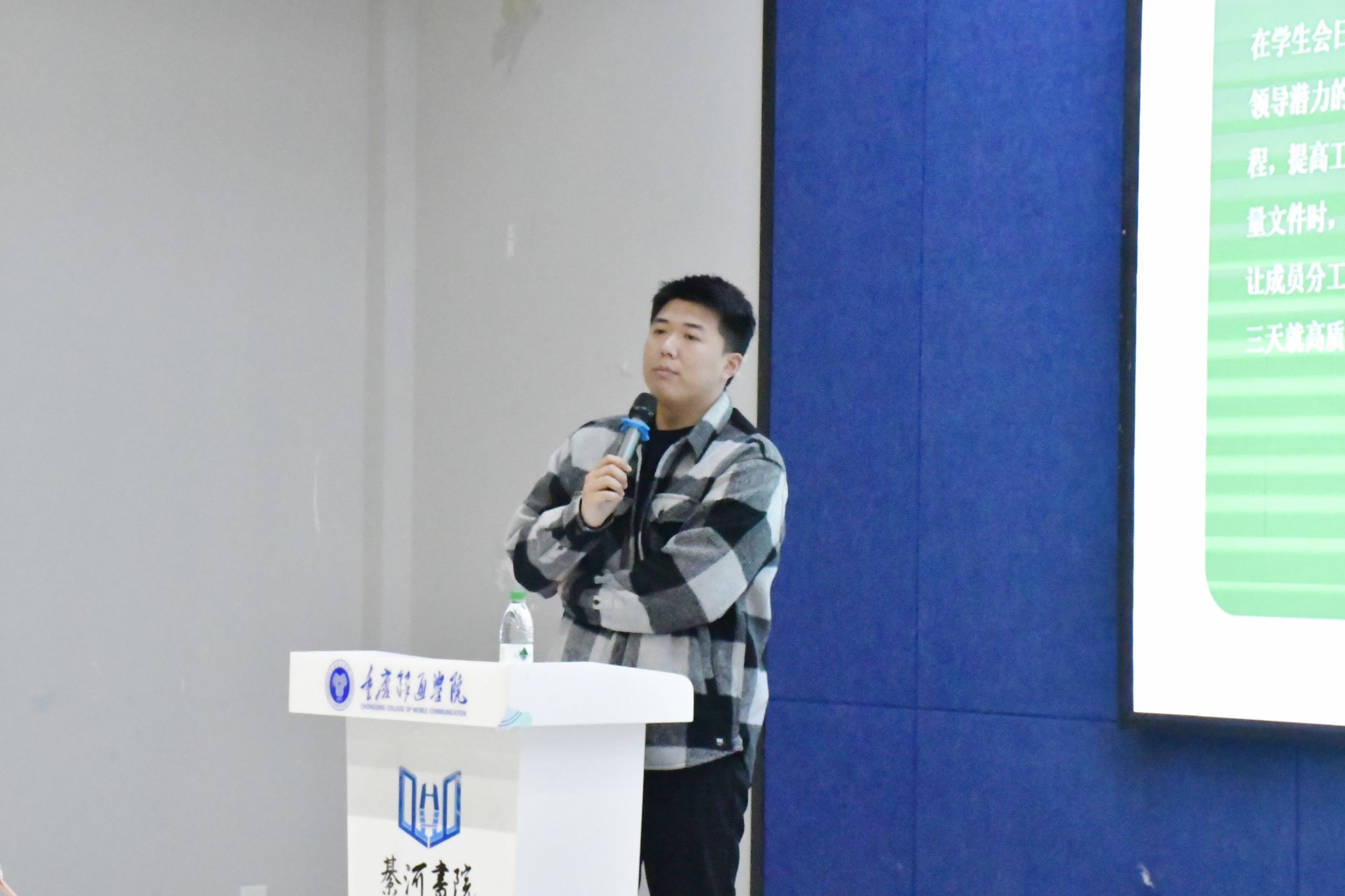 评估自我知长短,完善自身向高远。孙老师介绍了多种自我评估方法。例如,通过问卷调查和他人反馈评估沟通能力,借助自我评估清单和他人观察来考量组织能力,利用情景模拟测试与案例分析提升应变能力。知不足,觅良方。在提升领导力方面,孙老师推荐了多样的学习方法例如阅读经典书籍、学习优质课程,参与培训讲座等。同时,他强调了有效沟通技巧和团队激励方法的重要性,鼓励学生干部清晰表达观点、积极倾听,并根据成员需求多样化激励团队。