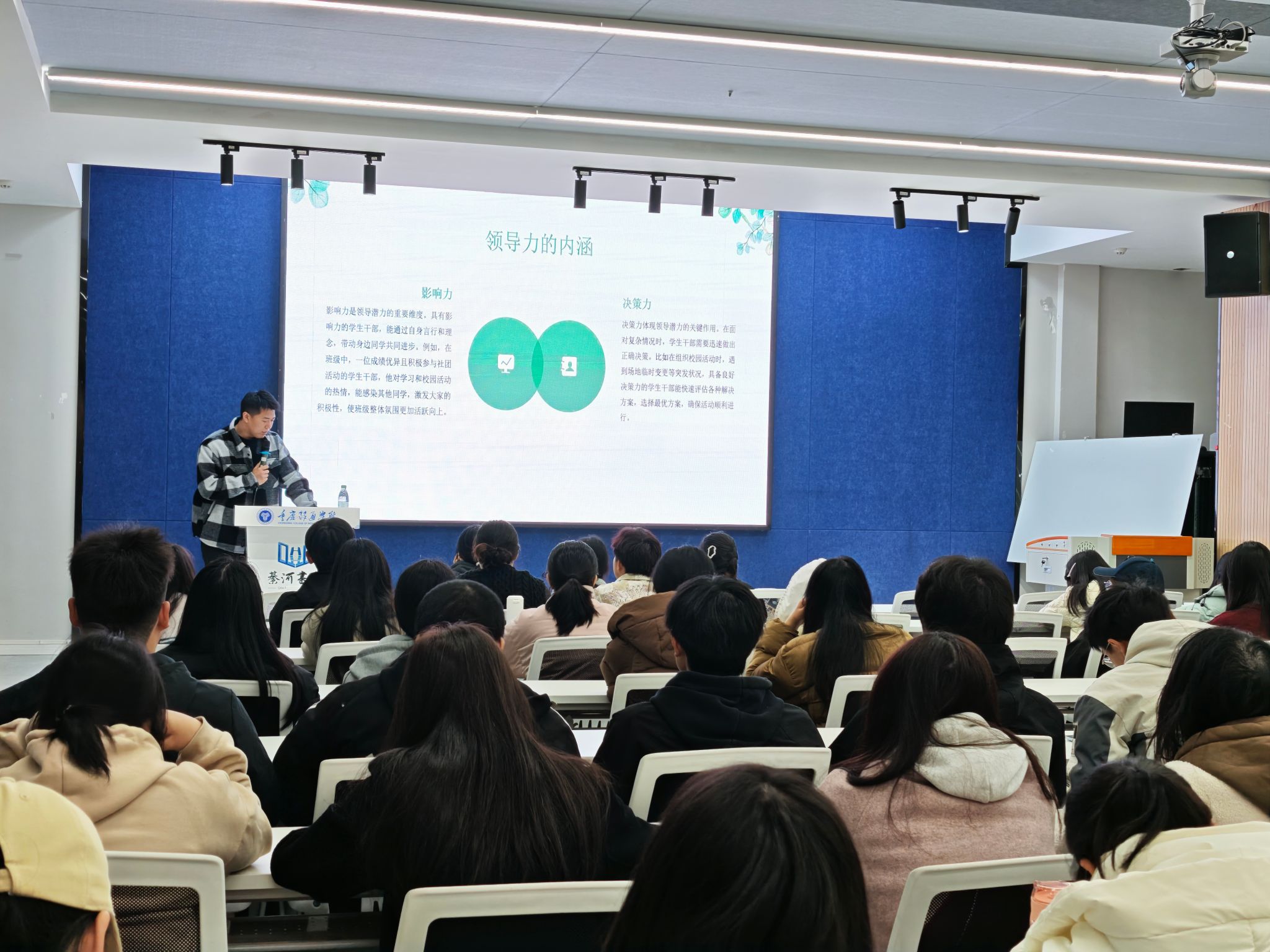 培训伊始,孙老师以其丰富的理论知识和实践经验,迅速吸引了在场团干部的注意力开启了有关领导理论的精彩分享。孙老师指出,领导力内涵丰富,涵盖影响力、决策力和团队协作力。影响力能带动同学进步,决策力可在复杂情况下保障活动顺利推进,团队协作力则能高效整合团队资源。谈及学生干部为何需要领导力,孙老师表示,在日常工作中,它能优化分工、提升效率。团干部们认真聆听,深刻认识到领导力在团队管理和组织发展中的重要性,为团干部的成长和发展提供了有力指引 。