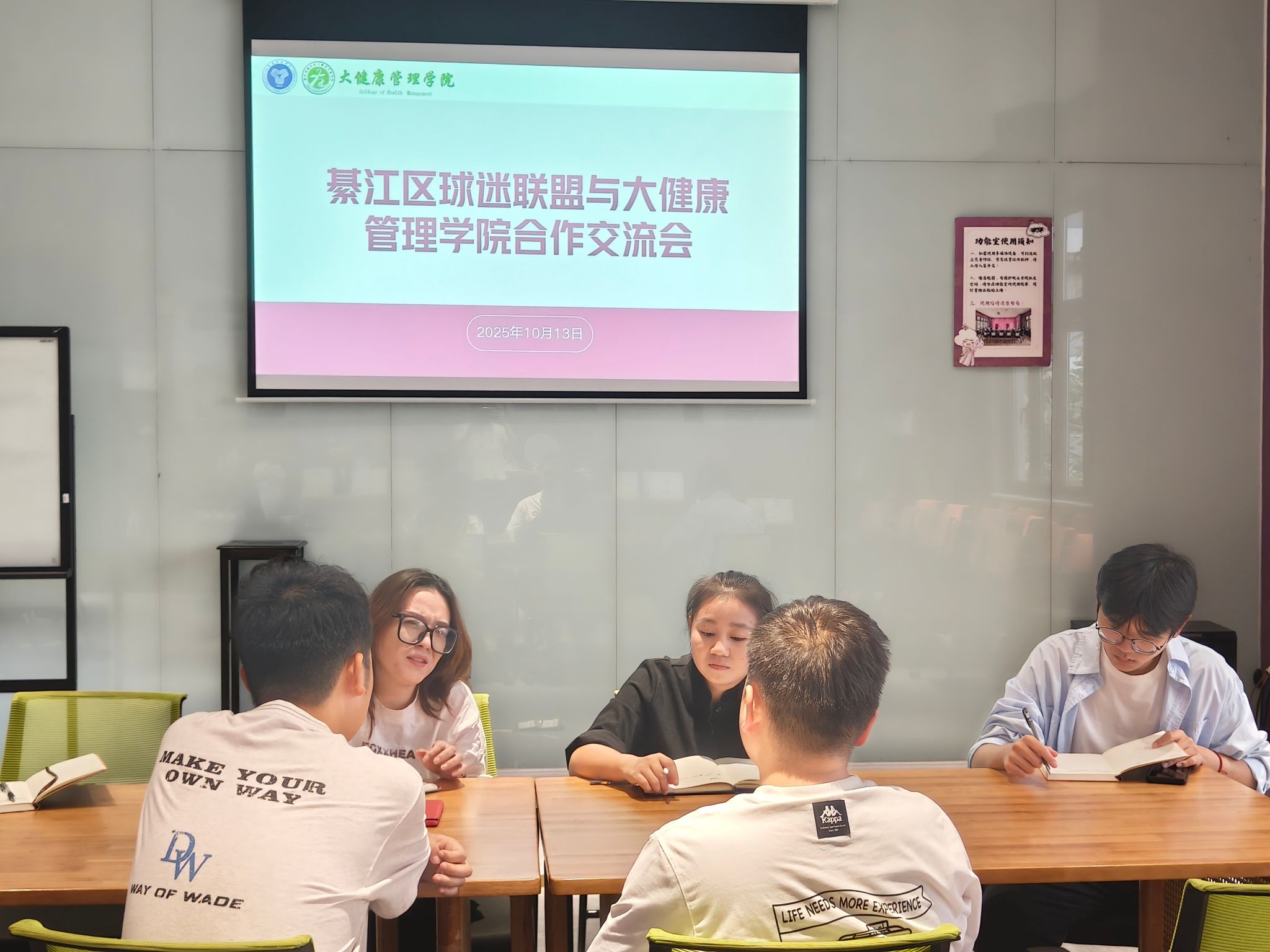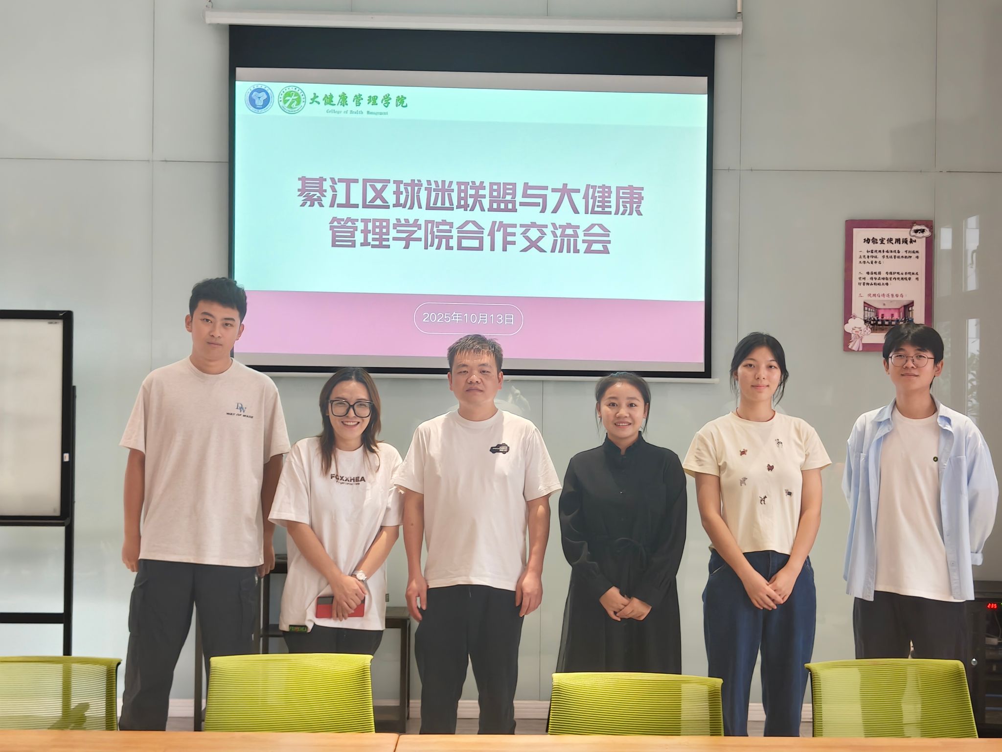 为深化校地合作,推动校园足球文化发展,10月13日,大健康管理学院与綦江区球迷联盟在观云·立冬朋辈交流空间顺利开展合作交流会。本次交流会由大健康管理学院团总支书记彭兰萱主持。綦江区球迷联盟代表周庆,学院竞技体育板块指导老师翁焰,学生代表吴悦、刘怡铭、李星燃共同参加了会议。