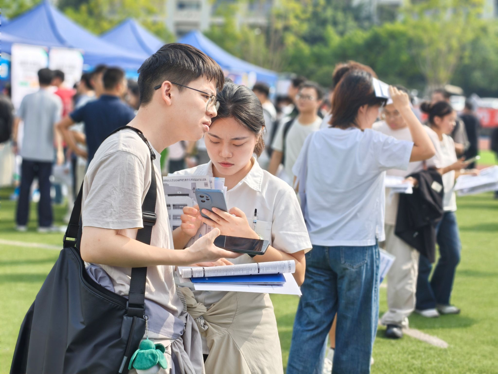 两场双选会规模盛大,涵盖医疗健康、信息技术、文化创意等多个行业领域,提供健康管理、运营策划、技术支持等多元岗位,吸引了众多高校毕业生同台交流。现场不仅设有服务点,由专业教师为学子提供一对一职业规划指导,还配备了人工智能简历一体机,帮助同学优化个人简历,提升求职竞争力。