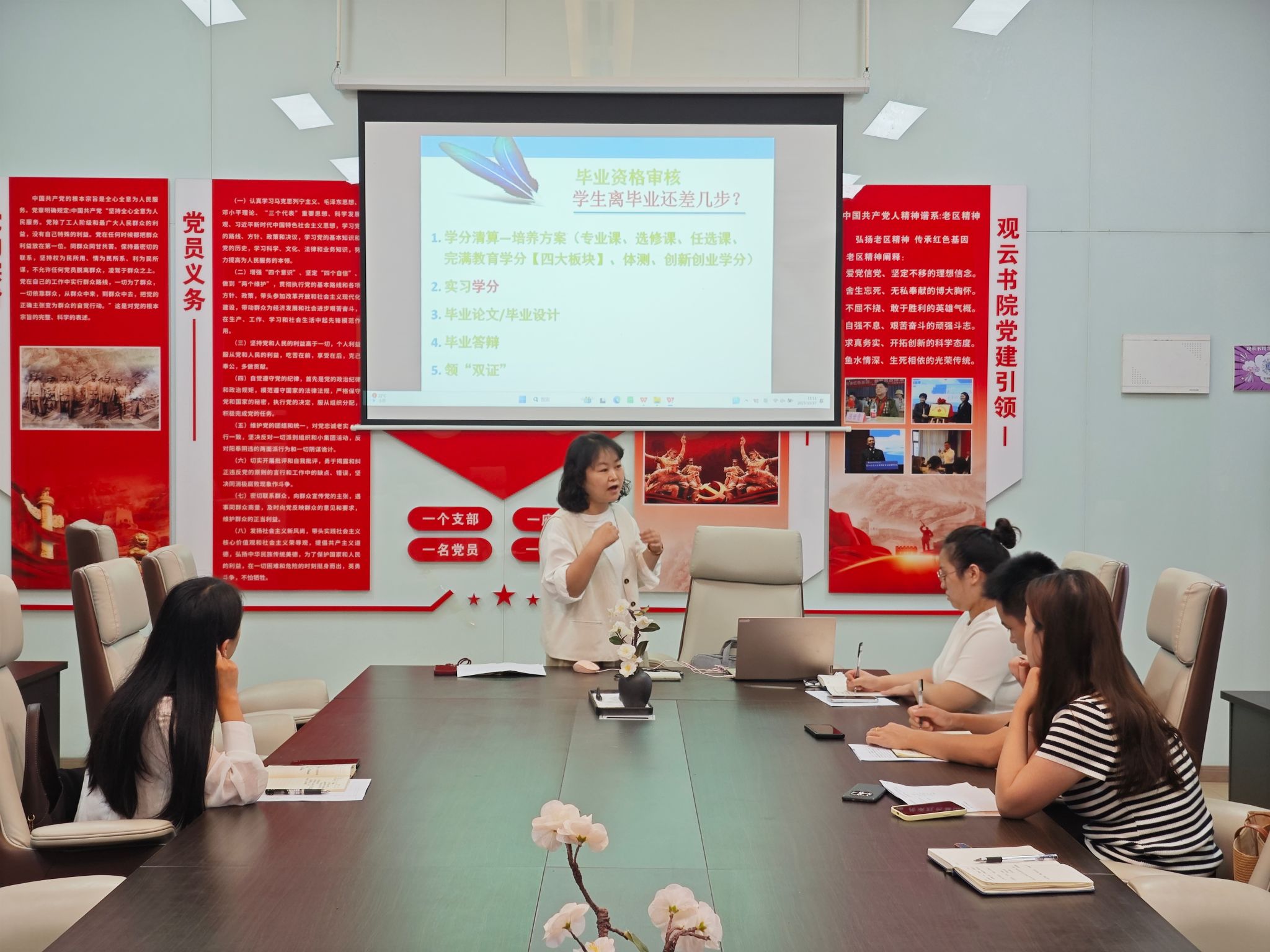 最后,学院党总支副书记童学容强调就业是育人工作的重要环节,要求全体辅导员提高站位、压实责任、用心用情做好毕业生就业服务与引导工作,确保本届就业工作目标圆满完成。