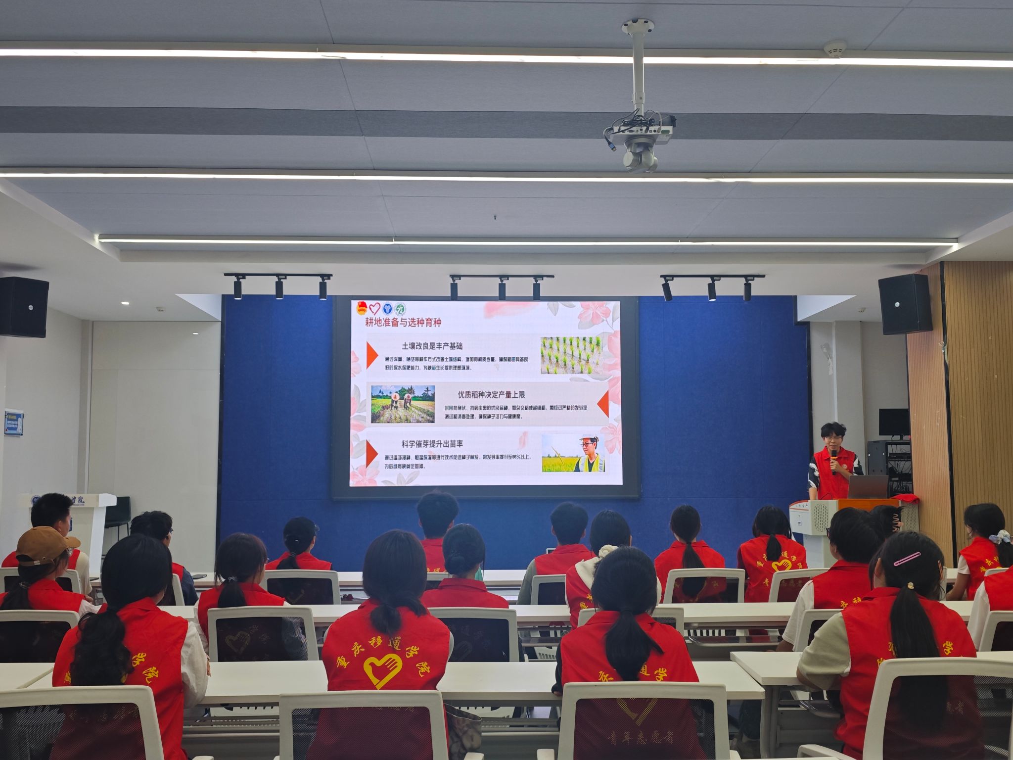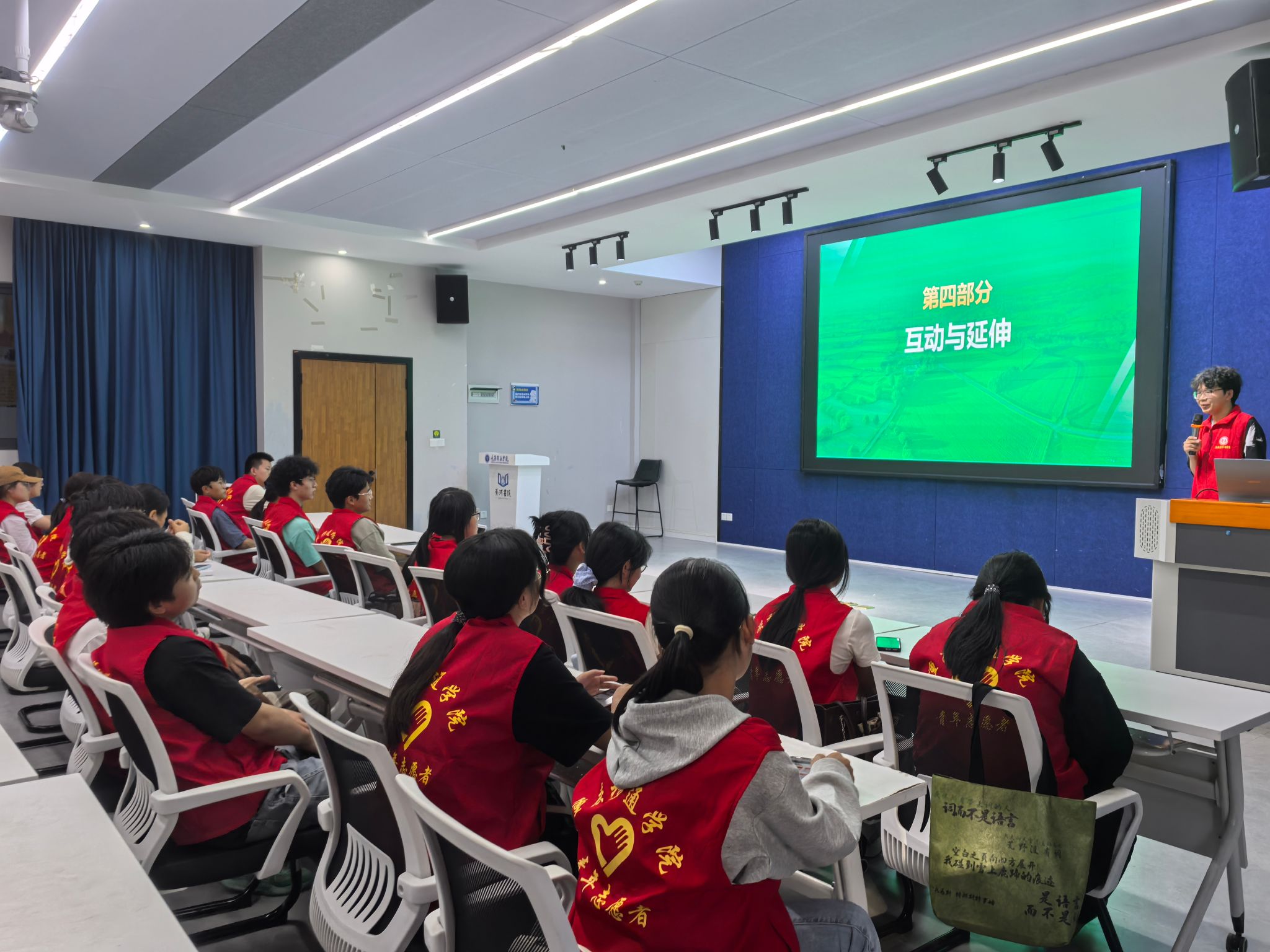 青年志愿者协会综合行政部部长刘仁杰生动展示了粮食从播种到收获的全过程,阐释了粮食在人类生存、国家战略与全球安全中的核心地位,揭示了当前国内外粮食安全面临的严峻形势,进一步强调了节约粮食的现实紧迫性与深远意义。