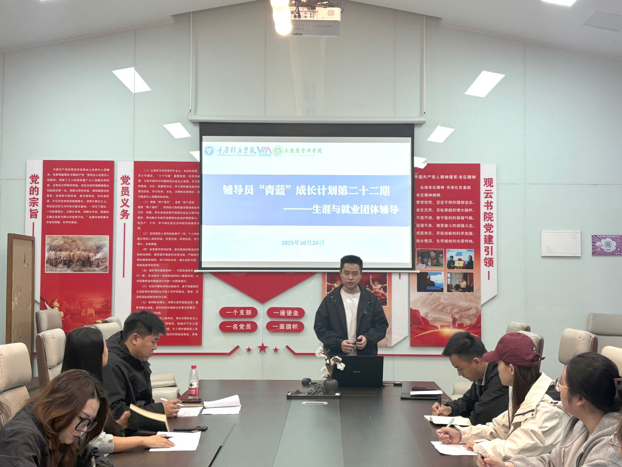 10月24日,大健康管理学院辅导员“青蓝”成长计划第22期在观云书院小雪会议室举行。本期活动以“生涯与就业团体辅导”为主题,由周顺航老师担任主讲,持续加强辅导员队伍专业化、职业化建设。