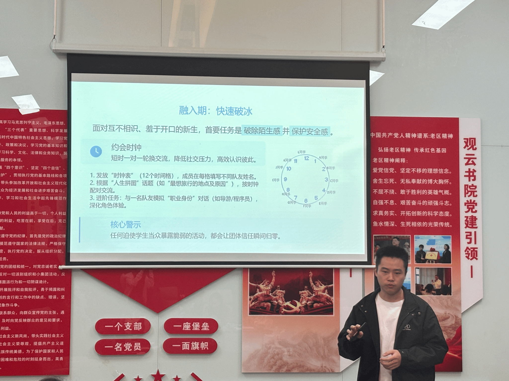 分享会上,周老师系统阐述了生涯团体辅导的四个关键阶段。首先是“融入期”,通过破冰活动打破成员间的陌生感,能够有效降低初始求职焦虑;进入“责任期”,着重强调建立团队规则与信任,构建坚实的朋辈互助网络;“开放期”则致力于激发成员自我觉察,引导其深入探索并破解职业迷茫;最后的“分离期”需妥善处理离别情绪,并将讨论成果转化为积极的就业行动力。