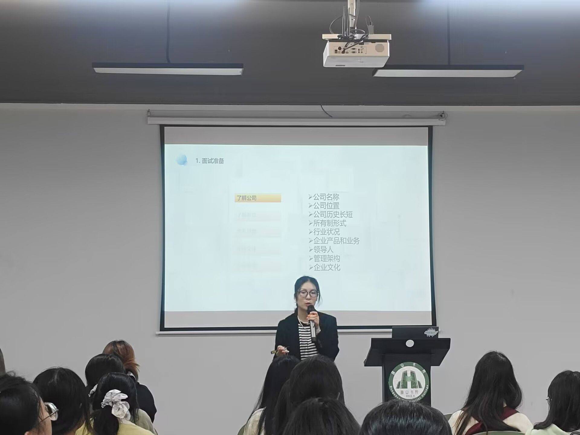 活动伊始,崔老师聚焦面试心态与第一印象,通过生动案例深入浅出地剖析面试核心要点,并引用“阿里巴巴人才画像”,强调专业形象塑造与秉持“自信+诚信”原则进行有效沟通的重要性。引导学生构建清晰的表达逻辑,学会在有限时间内精准传递个人优势与价值。