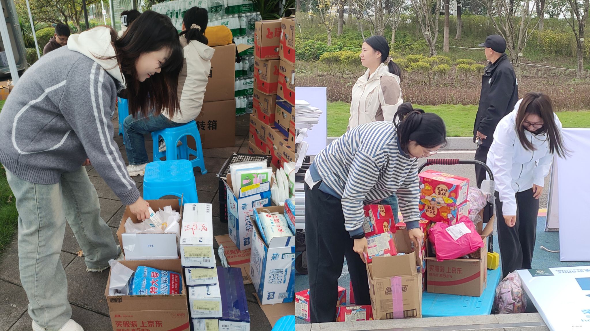 第二天团队转战明月湖主会场,承担赛事物流保障。清晨抵达后,学生在企业指导下分组协作:一组分拣核对物资,一组按路线配送至7个补给点。尽管任务繁重、时间紧张,他们仍准确完成配送,赢得赛事团队认可。