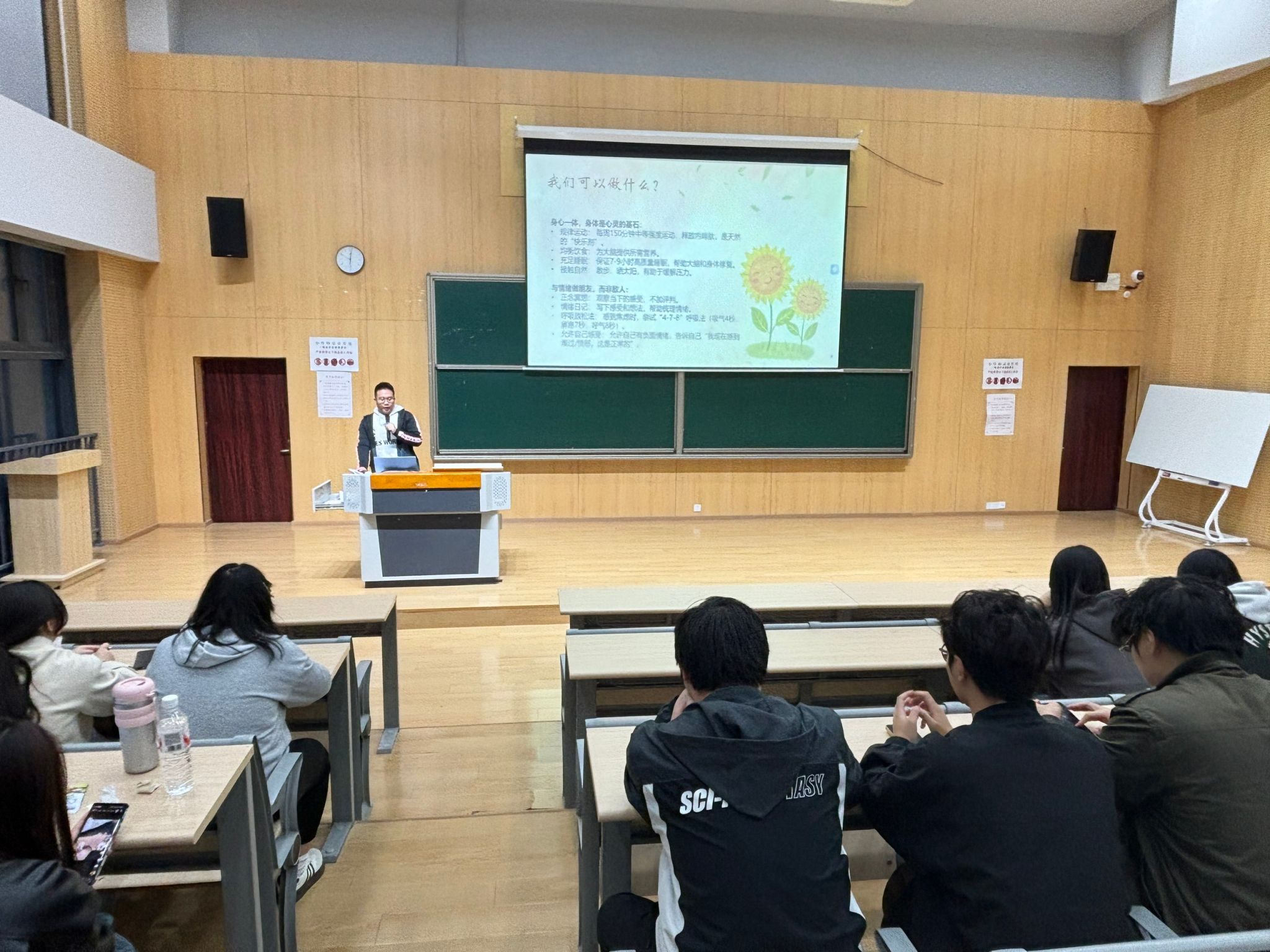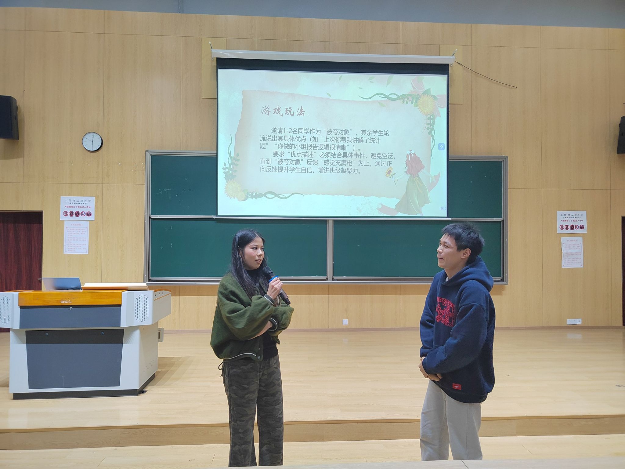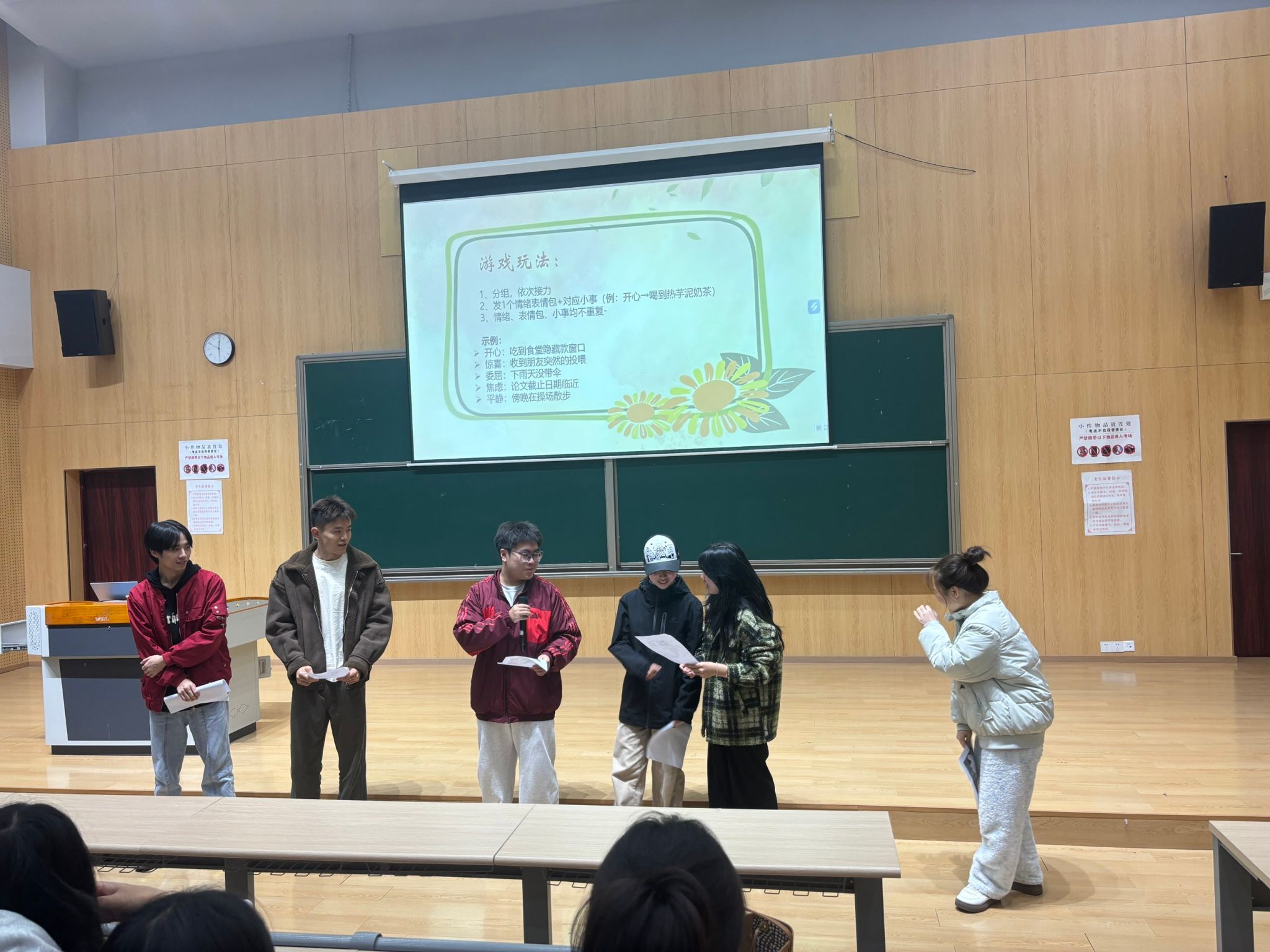 为帮助同学们缓解学业与生活压力,培育积极健康的心态,25级健康服务与管理(专升本)8-14班于11月5日在玉棠书院阶梯教室成功开展了“以心为舟,向阳而行”心理健康主题年级会。师生齐聚一堂,摒弃复杂理论,通过趣味互动、真诚分享与干货交流,共同为心灵“松绑”,筑牢大学生心理健康防线。