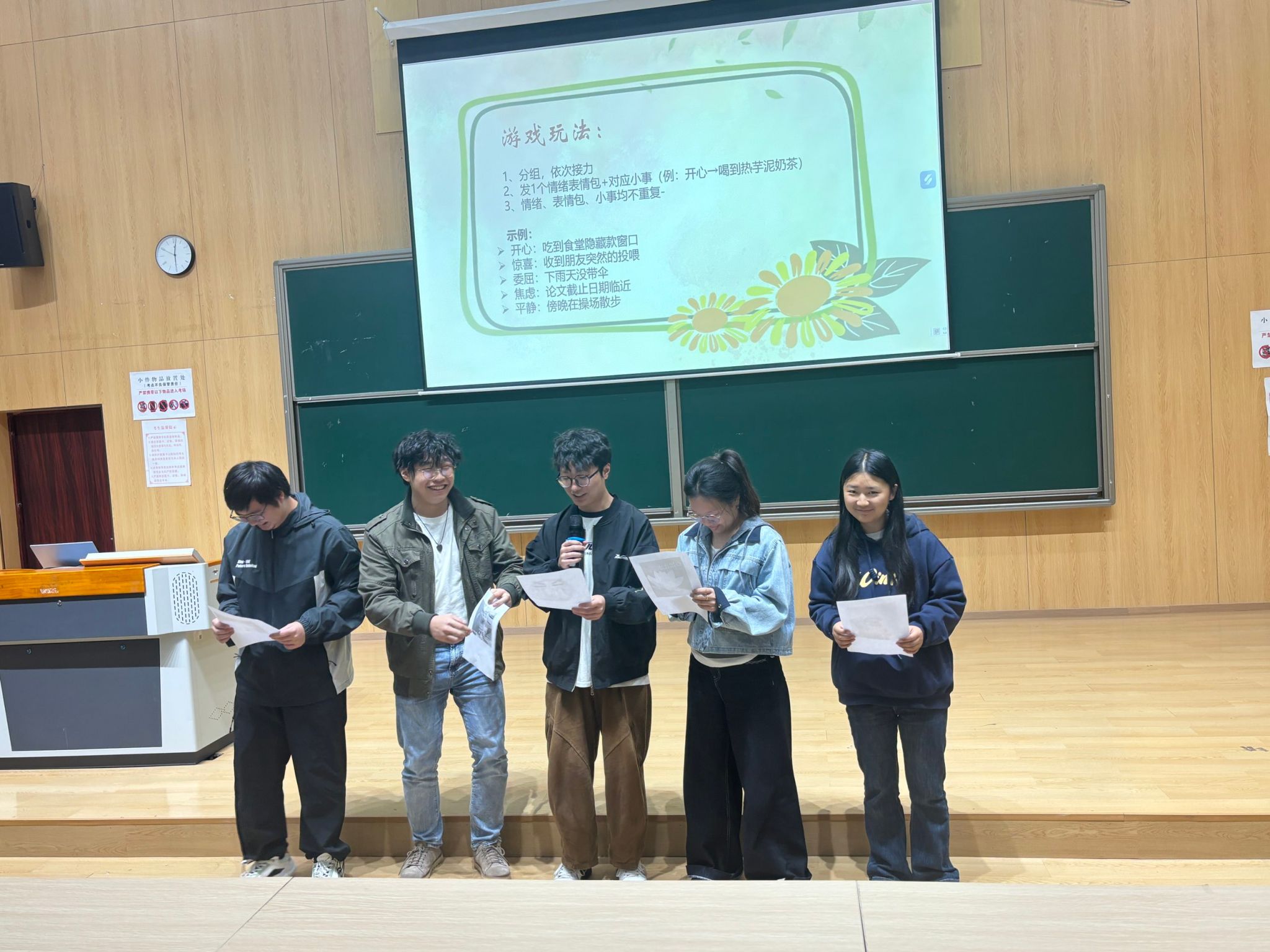 活动伊始,“情绪表情包接力”暖场环节迅速点燃现场氛围。同学们积极上台,以表情包搭配生活小事,分享自己“开心”“失落”等多样情绪,一个个鲜活的片段让大家感受到彼此生活中的喜怒哀乐,快速拉近了心灵距离。