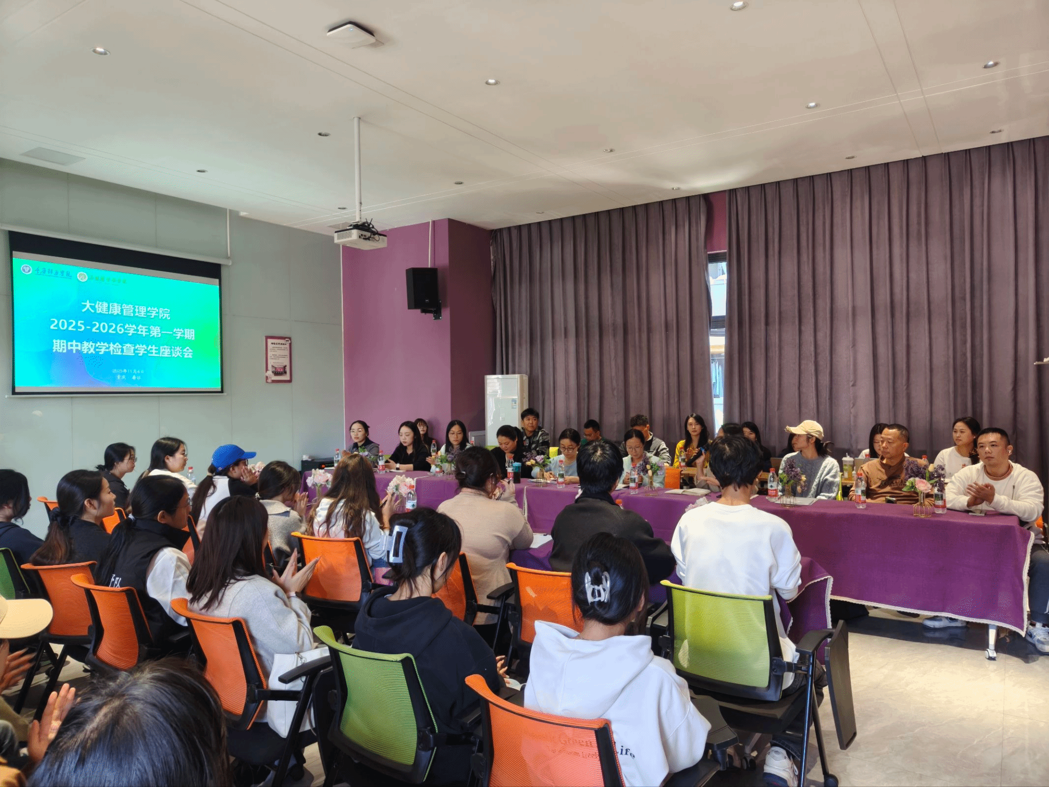 2025年11月4日大健康管理学院于观云书院立冬功能室举办期中教学检查学生座谈会。本次座谈会由大健康管理学院教学副院长张红主持,邀请到学院院领导在内的教研室主任、学工办主任、教师代表、辅导员代表及各年级学生代表参会。