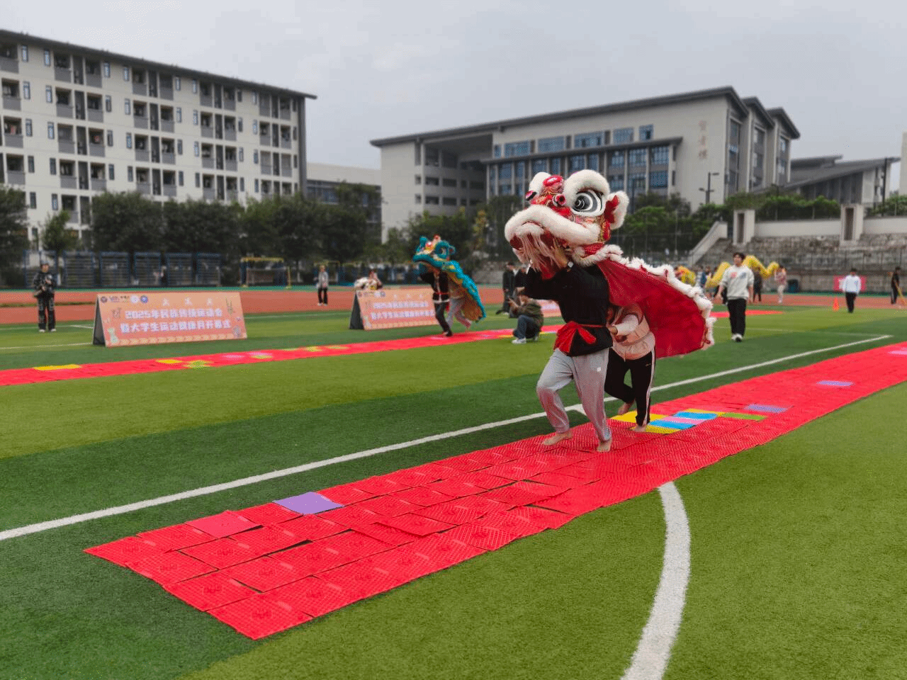 锣鼓铿锵,龙腾狮跃。活动现场,金黄巨龙灵动翻腾,红、粉、黄三色醒狮昂首摆尾,武术队员们以刚劲舒展的招式亮相,将舞龙、醒狮、传统武术等民族文化符号融于一体,生动展现了中华传统体育项目的独特魅力,也为这场民族文化盛会奏响了活力开篇。