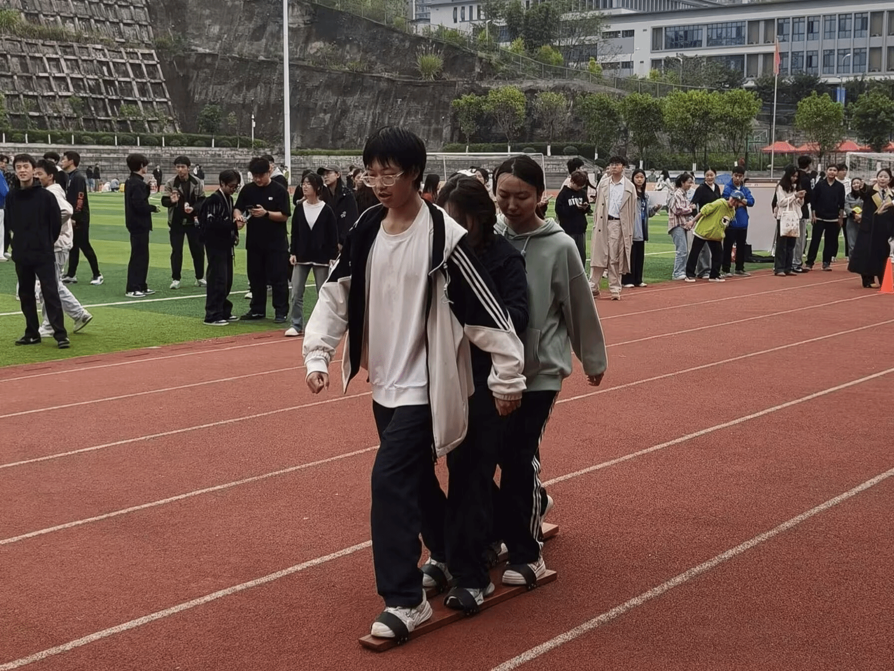 “快一点!再快一点!”在“綦心聚力”板鞋竞速里,三人绑足同频奔跃,步伐一致,口号声里展现了“同进同退”的默契。