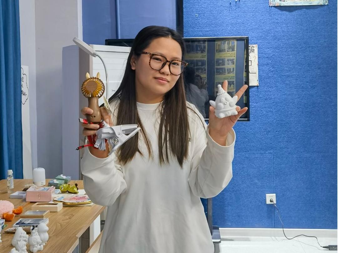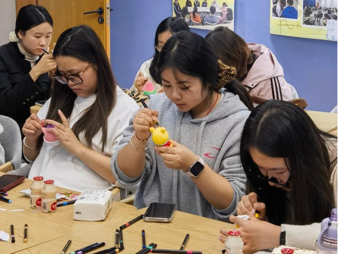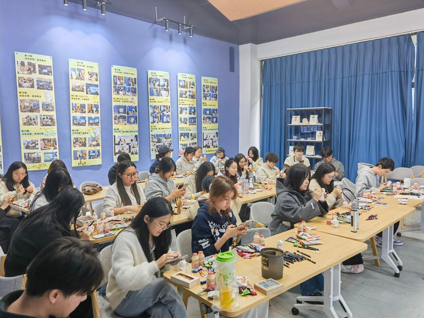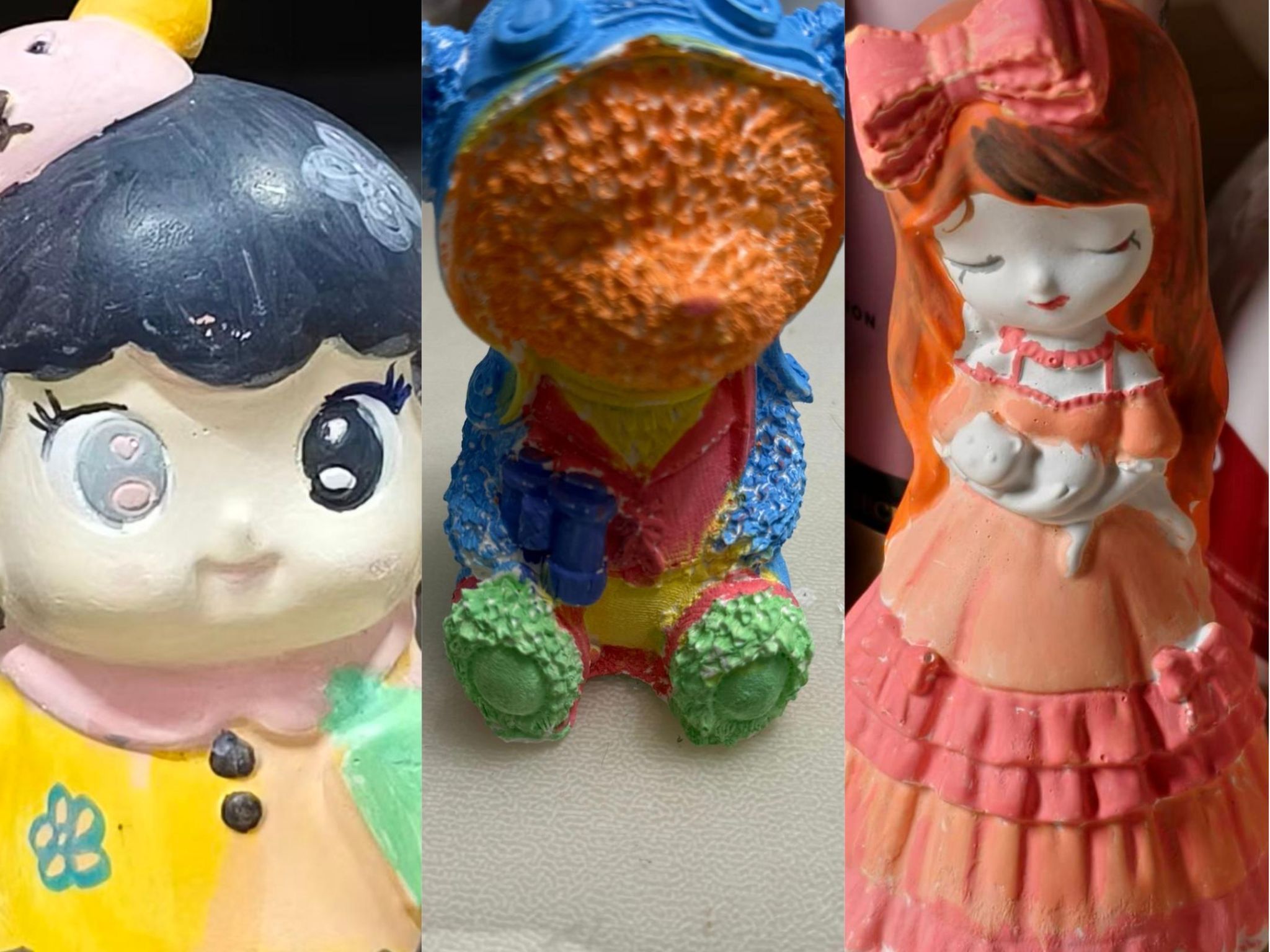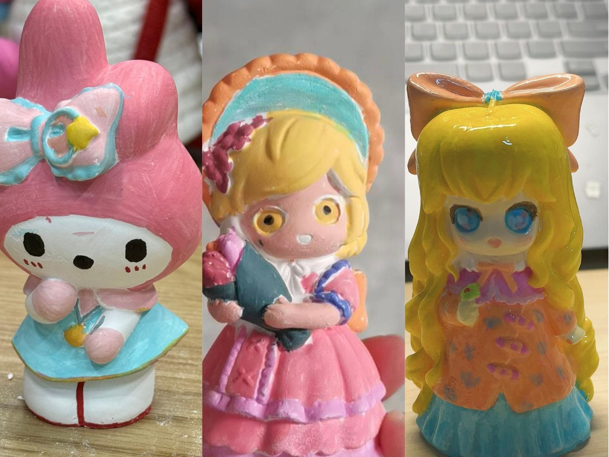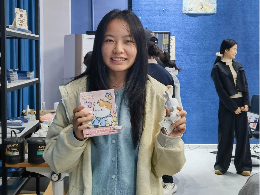 游戏环节落幕,总积分最高的队伍率先挑选“旧物盲盒”,兑换专属奖励。随后,石膏娃娃DIY环节开启,大家拿起画笔,发挥创意,为纯白石膏娃娃涂上绚丽色彩,在动手实践中释放灵感。