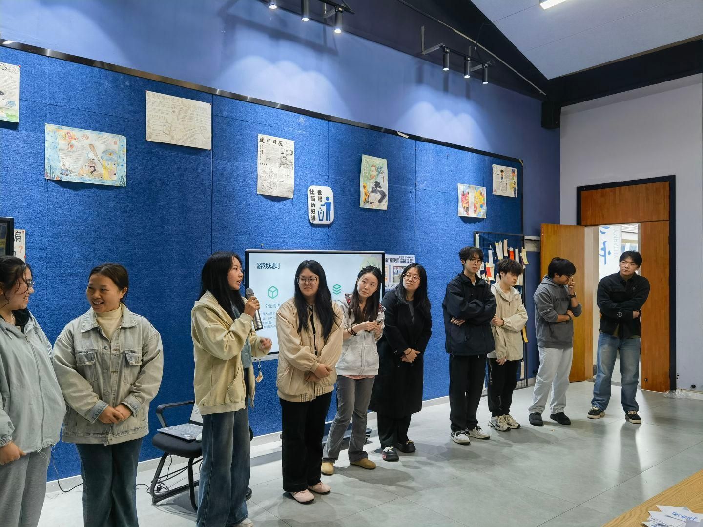 11月14日14:00,活动正式开始,各队伍迅速组队投入闯关!“害你在心口难开”环节中,大家小心翼翼避开禁忌词;“谁是卧底”里,同学们精准描述、谨慎投票;“你画我猜接力”现场笑料百出,“数字炸弹”环节紧张刺激。每轮游戏结束后,工作人员会即时统计积分并公开,大家为了心仪的“旧物盲盒”全力以赴。