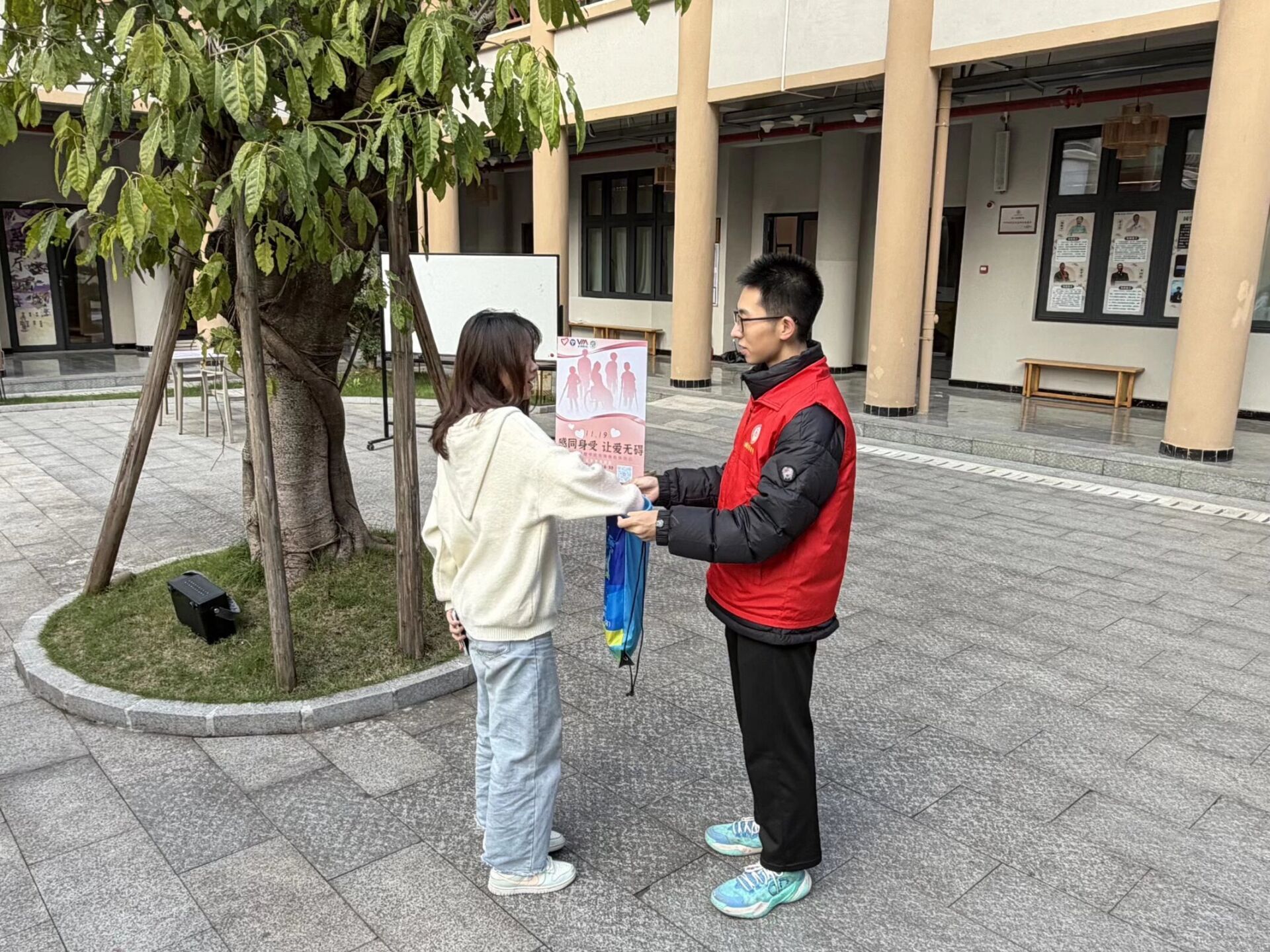 为切实消弭校园对残障群体的认知鸿沟,打破“同情式关怀”的认知误区,引导学生以“沉浸式体验”代替“旁观者观察”,真正理解残障群体的生活困境与生命韧性,11月19日16:30至18:30,由院青协宣传推广部举办的“感同身受,让爱无碍”残障角色体验日活动于观云书院中庭开启。