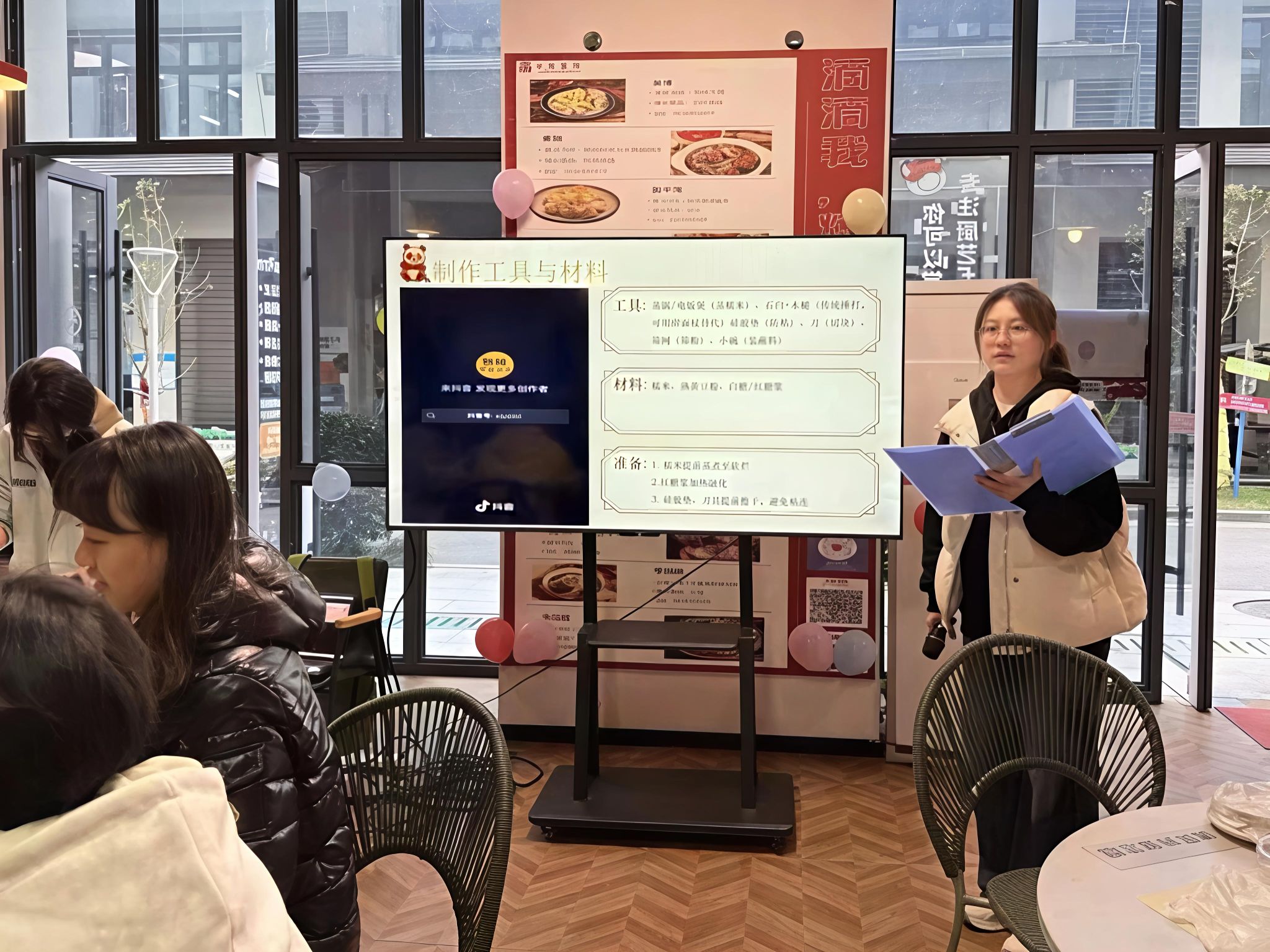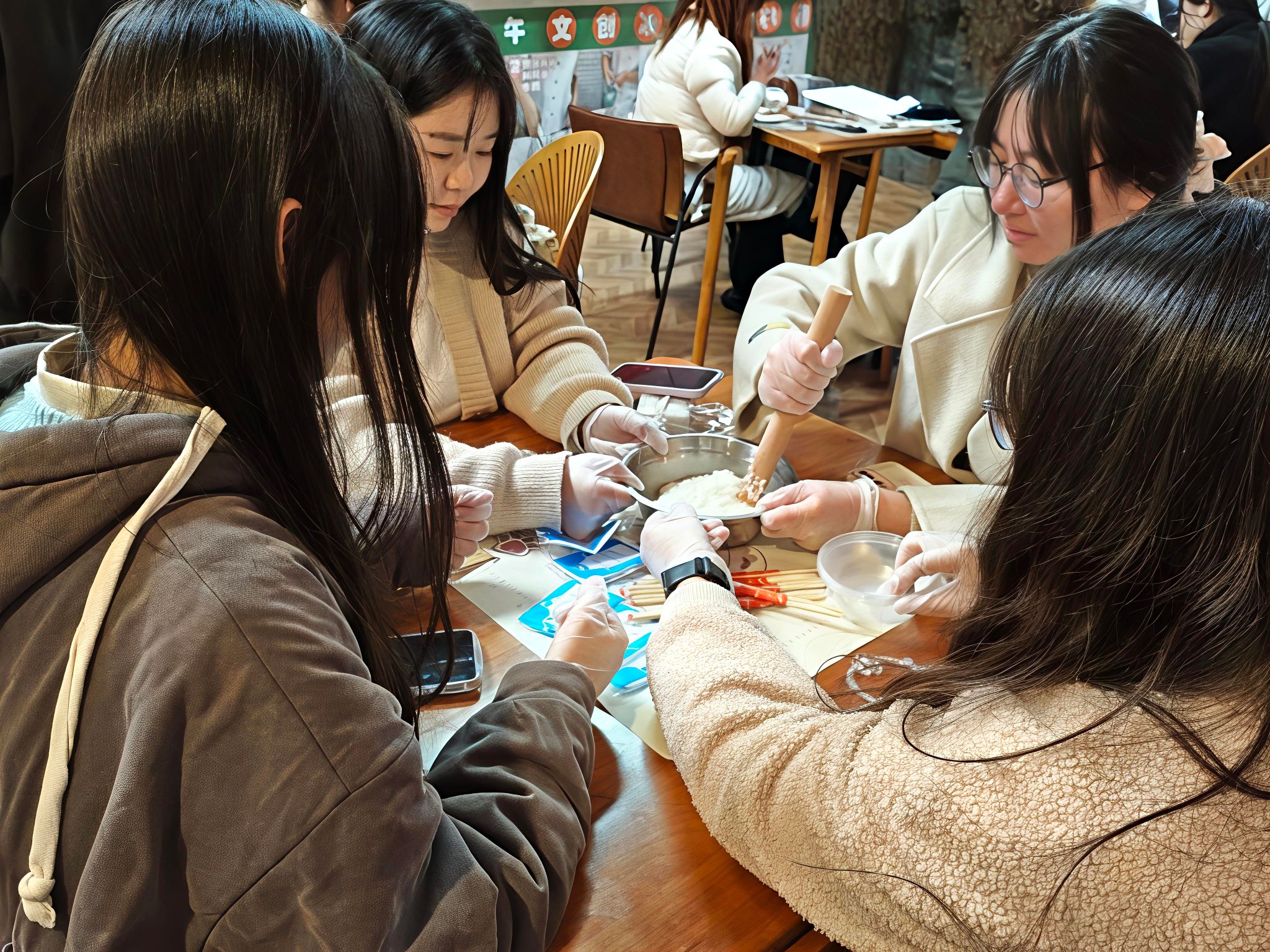 为传承节气文化,大健康管理学院于11月19日在玉棠书院半糖煮艺烘焙坊开展了糯香食愈糍粑手作活动。活动巧妙融合文化讲解与趣味互动体验,让参与者在木槌起落的捶打揉捏间,沉浸式感受传统美食的独特魅力与节气文化的深厚韵味。