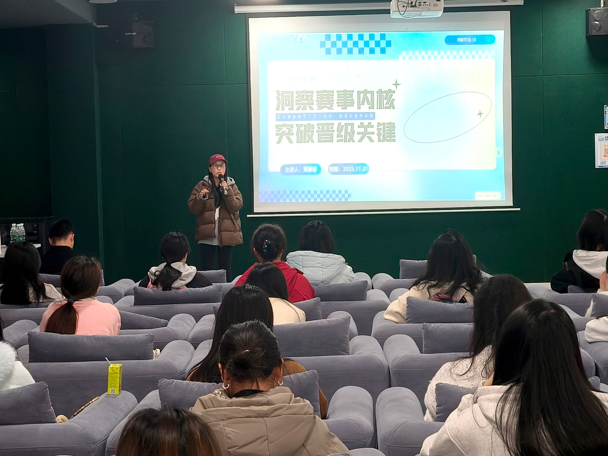 为提升学生创新创业赛事竞争力,推动项目从赛场向实践落地,大健康管理学院于11月21日在綦河书院星云·影音室成功开展了“赛事进阶之道——从认识到落地,用创新思维打造差异化竞争力”主题讲座。此次讲座由綦河书院学生发展导师、学校就业创业导师库成员陈雅若老师主讲。