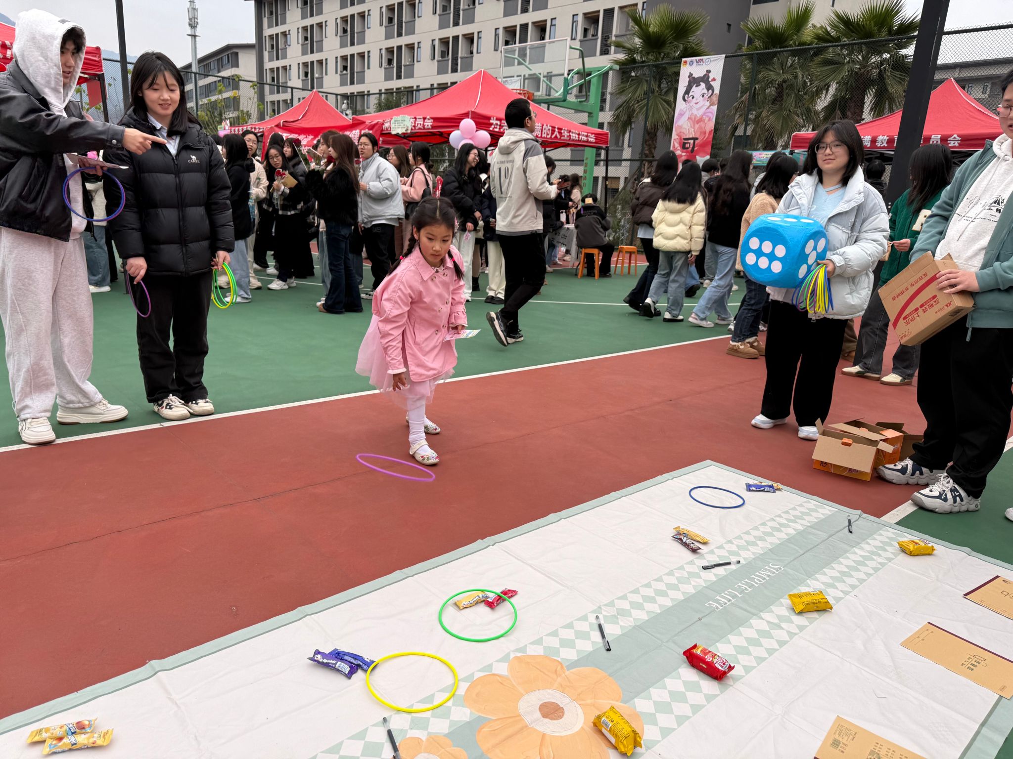 直击活动第一现场贤者楼篮球场,看到的是穿着打扮各不相同的女生们,排着队掷出手中各色的套圈,套圈奖品多样让大家自由选择,在游戏中收获惊喜,尽情享受节日的快乐。女生们自主选择套圈目标与出手时机,通过不同的技巧与巧思在自由决策中尽享欢乐,活动既释放压力,又展示自主精神,成为女生节一抹亮丽风景。