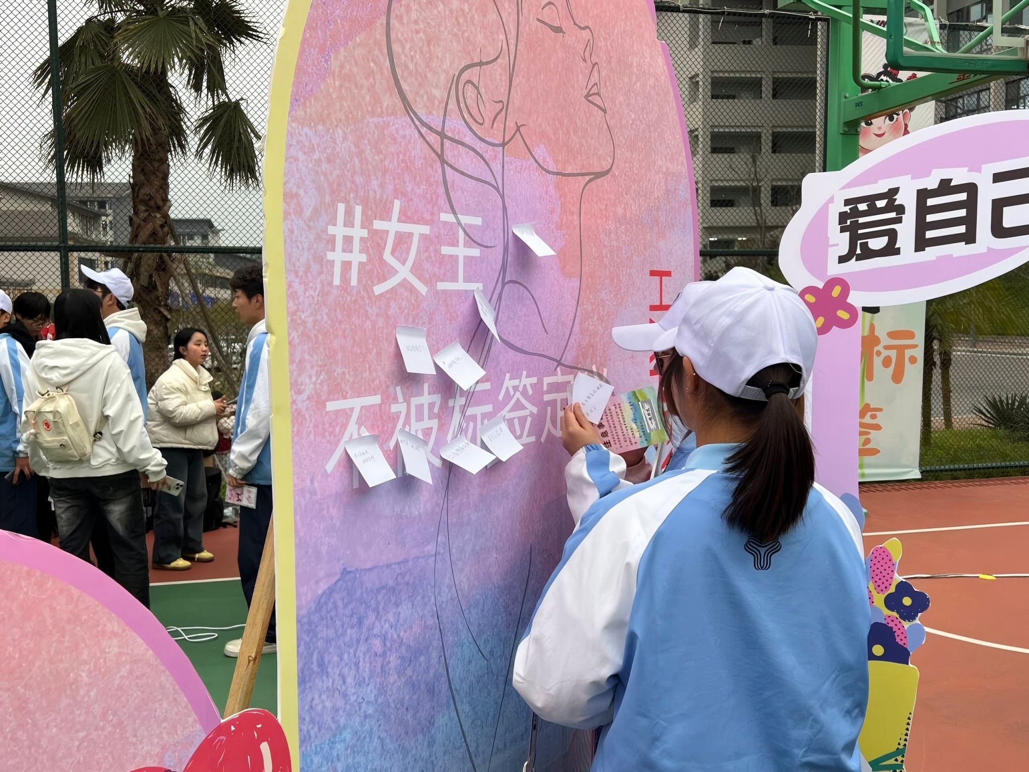 除了套圈小游戏之外,打卡并撕掉定义标签墙也聚集了不少的人。女生们将那一个个外界不善的眼光、不好的言语、不同的标签统统撕掉,化作成长盛开的养料,绽放出了属于自己最美丽的样子。一张张照片和画作在打卡点和标签墙上展示了什么是“我的人生我做主”,秀出了独属于女王的美丽。