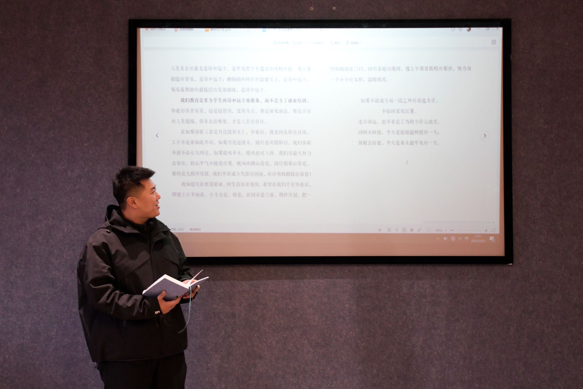 各位辅导员也迅速将学习成果转化为行动指南。孙泽宇老师提出以“诗与远方”为引,助力学生书写人生传奇,找到属于自己的幸福与成功。邱璐老师则强调“天命在己”理念,主张通过心理辅导助力学生“翻篇向前,向阳而生”。代敏老师则提出自己对工作的思考,认为教育之爱是从“职业培训”迈向“生命培育”,完满教育是在“柴米油盐”中播种星辰大海,将自己的未来方向明确为做学生“人生目的地”的引渡人。