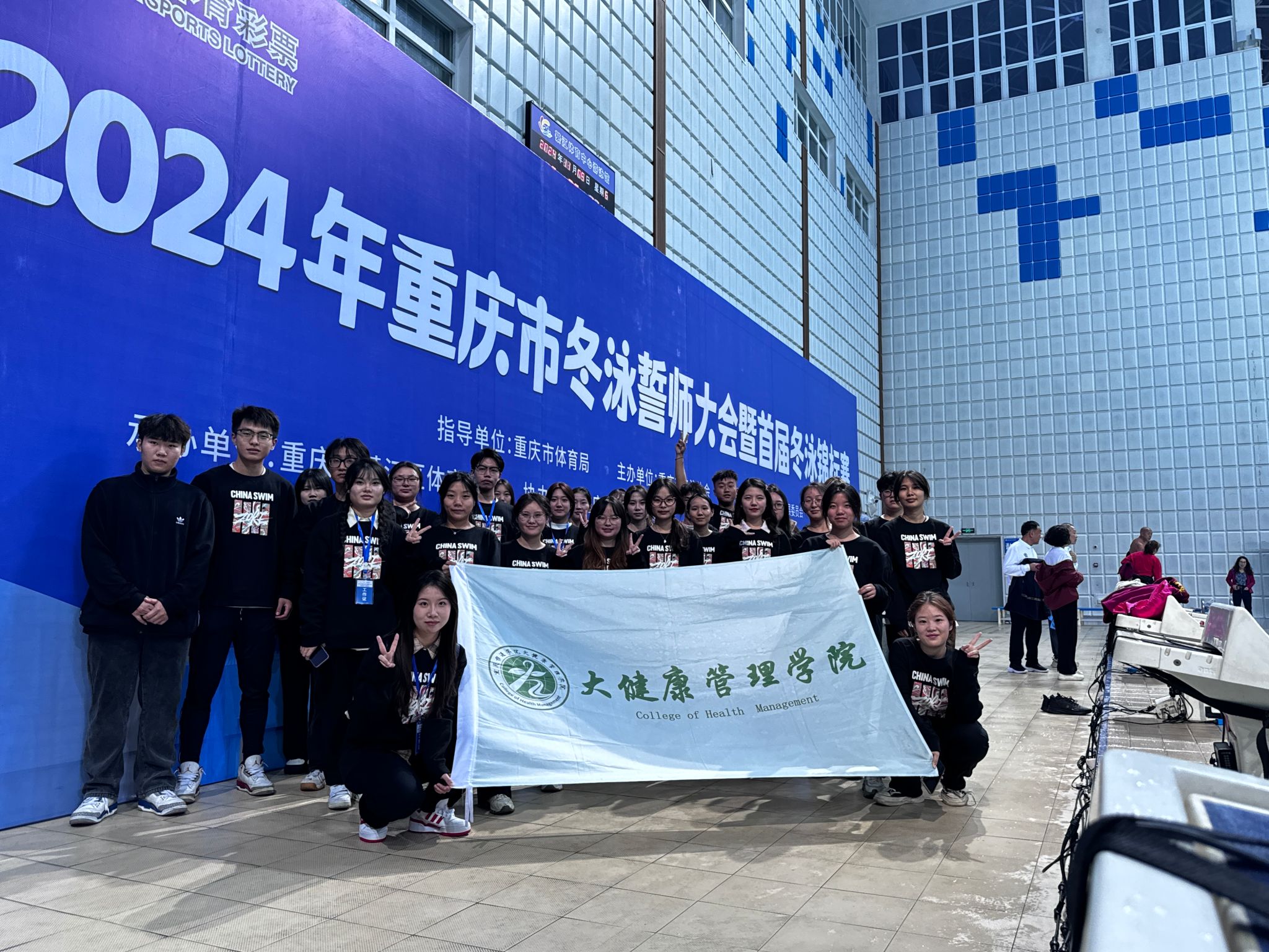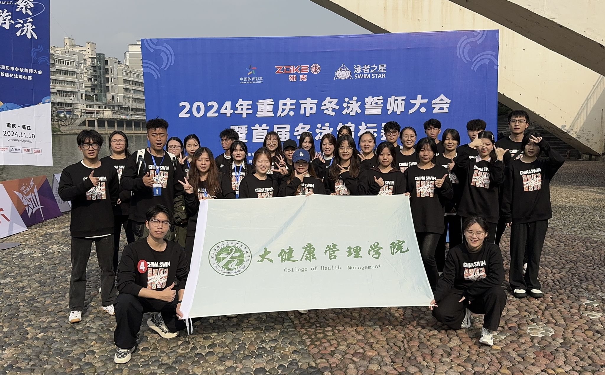 在重庆市体育局的悉心指导下,由綦江区文化和旅游发展委员会携手重庆冬泳协会共同主办,綦江区体育中心承办,綦江区游泳协会协办的“重庆市冬泳誓师大会暨首届冬泳锦标赛”于11月9日至10日在綦江区游泳馆及綦江河城区段盛大举行。此次比赛吸引了来自山东、贵州、重庆等地1000余名游泳爱好者参与,他们汇聚一堂,用无畏的勇气和满腔的热情,为寒冷的冬日江水注入了无限活力。在这场体育与健康的盛宴中,大健康管理学院的学生们以其专业的后勤保障能力,成为了活动成功举办的重要支撑。