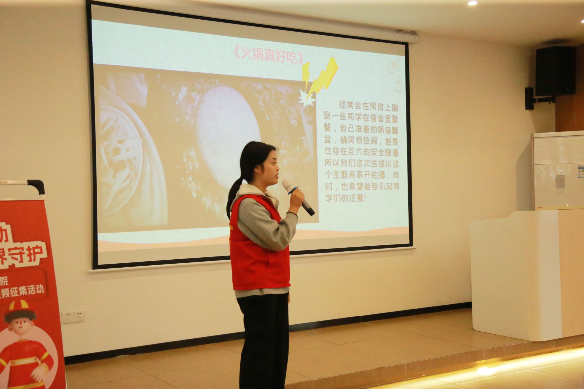 答辩现场,各参赛团队热情洋溢地展示了他们精心制作的视频作品,通过生动的讲解与精彩的演绎,充分展现了团队对于校园消防安全的深刻理解和创意表达。经过选手之间的激烈角逐与三位评委老师公正严谨的现场打分,最终,“为了学分队”“另外一枝花”等六支队伍的视频作品凭借其独特的创意、深刻的内容以及出色的表现,在众多参赛作品中脱颖而出,分别荣获一等奖、二等奖、三等奖及优秀奖。活动后续,获奖视频将通过线上宣传的方式,激发更多师生对防火安全的关注与重视,以共同推动校园消防安全工作的落实。