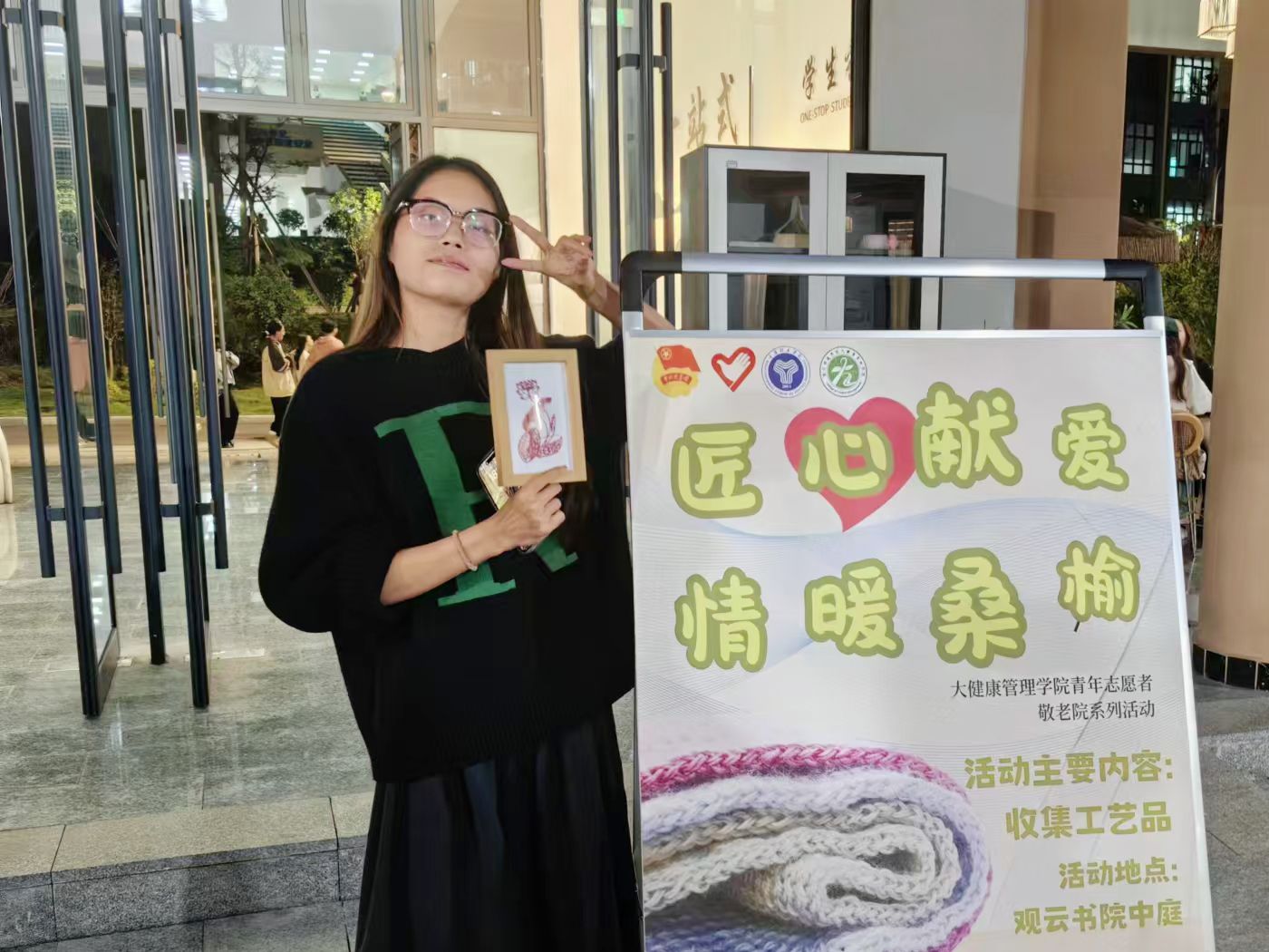 此次活动不仅增强了志愿者们的社会责任感,让老年人感受到了来自社会的温暖与关怀,更在校园内弘扬了敬老爱老的传统美德。活动中收集的手工制品将由大健康管理学院青年志愿者协会在后续的志愿活动中赠送给敬老院的老人们。这一举措旨在用实际行动传递爱心,激发更多群体加入到关爱老年人的行列中,共同营造一个老有所养、老有所乐的美好社会。
