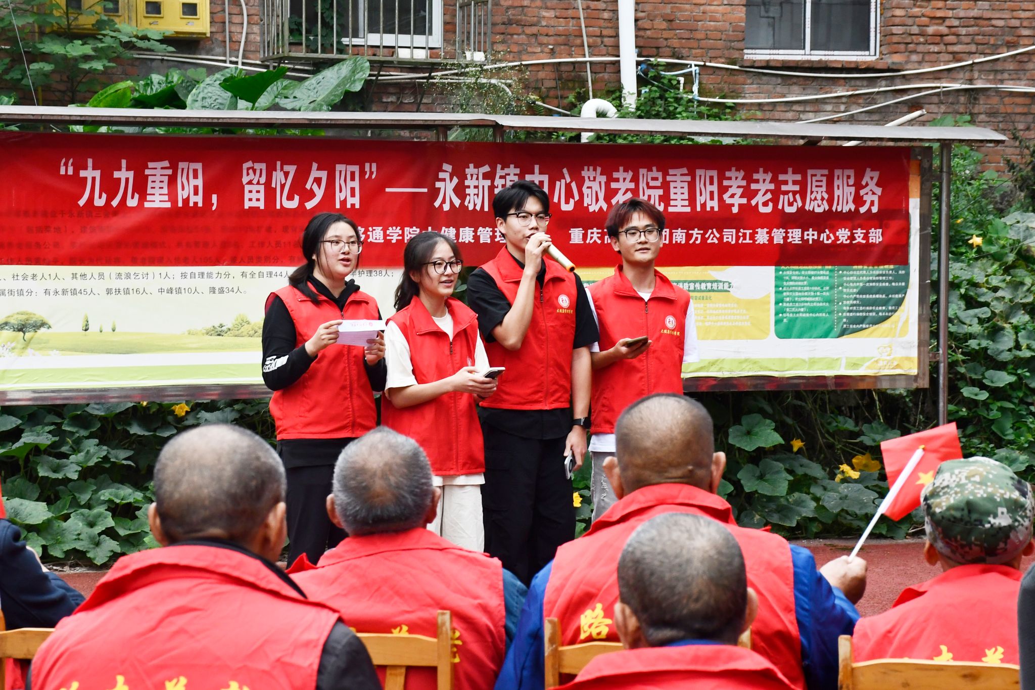 金秋十月,岁岁重阳。在重阳节这个尊老、敬老、爱老、助老的传统佳节里,重庆高速集团南方公司江綦管理中心党支部与大健康管理学院的志愿者们怀揣着拳拳之心与殷殷之情,于10月11日再度走进綦江区永兴镇敬老院,开展了一场以“九九重阳·留忆夕阳”为主题的志愿活动,为敬老院的老人们献上了一份温馨而特别的节日贺礼。