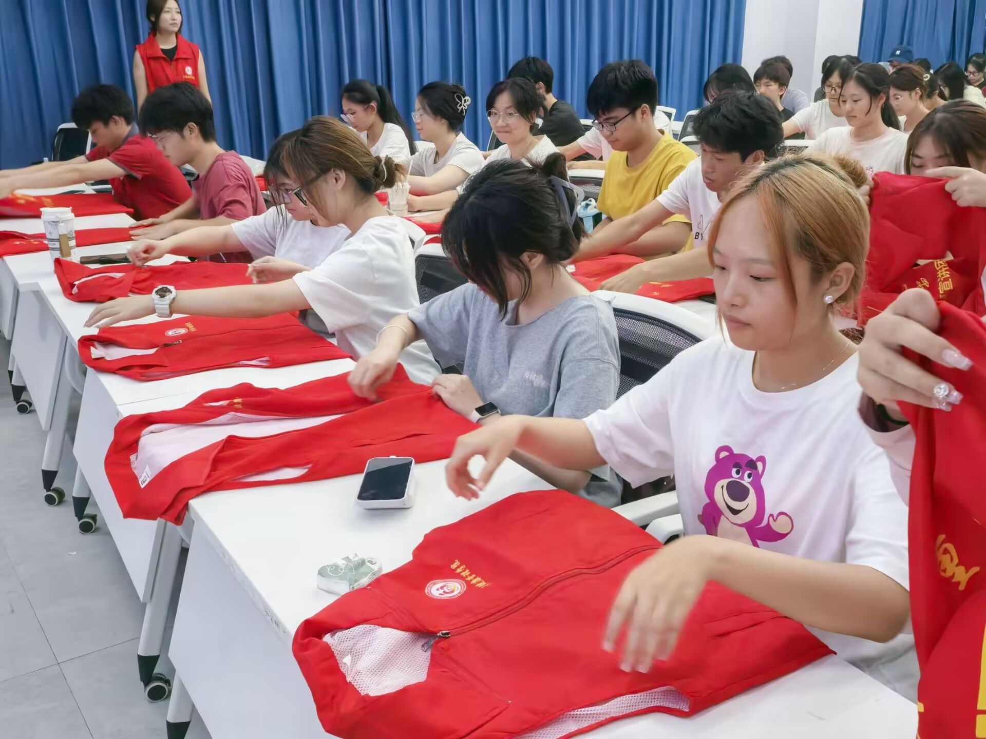 田常青学姐为大家进行红马甲穿戴方式的正确示范,并细致讲解了折叠技巧。红马甲作为各类公益活动志愿者的标志性服装,其庄严性和统一性不容小觑。红马甲不仅是一件衣物,更是力量、关爱和温暖的象征,规范穿着红马甲尤为重要。在学姐的耐心指导下,志愿者们对如何折叠红马甲有了深入的了解,大家都跃跃欲试,纷纷加入到学习折叠红马甲的行列中。现场氛围热烈,志愿者们的学习热情高涨。