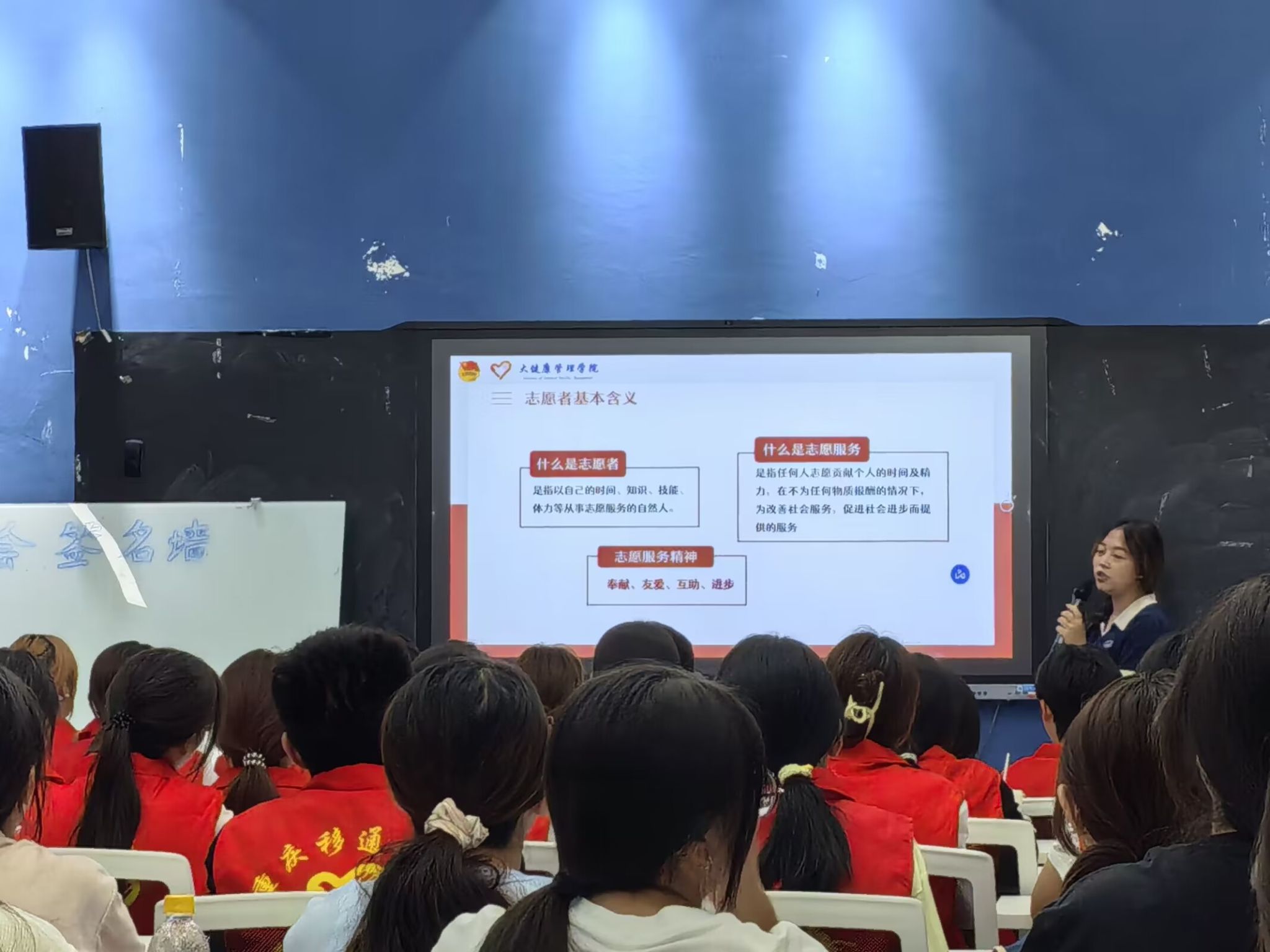 九月至,秋风起,因志愿而相聚,因青春而无悔。为大力推动校园文化建设,促使我校志愿服务工作迈向规范化发展新台阶,提升志愿服务信息化水平,构建全校统一的志愿服务信息平台,大健康管理学院青年志愿者协会于2024年9月25日下午于綦河书院智慧教室开办了第一期花果志愿服务培训计划初阶班。此次参加花果培训的对象是大健康管理学院青年志愿者协会各部门干事及2024级各班班委。