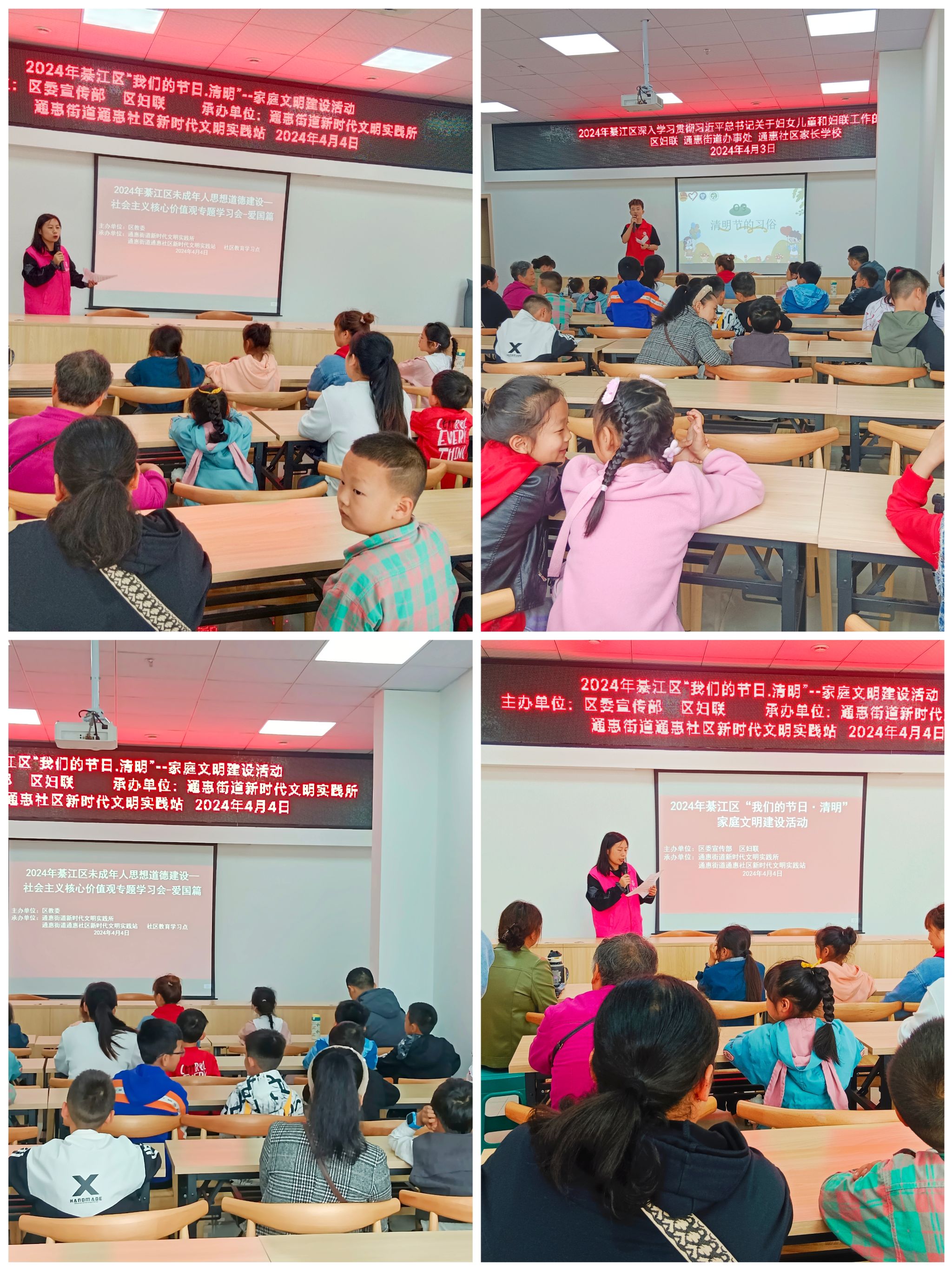 清明时节雨纷纷,空气中弥漫着湿润的泥土气息。尽管如此,志愿者们没有耽误一分一秒,仍然提前到达了通惠社区,有序签到,服从安排,各司其职。在社区工作人员的带领下,志愿者们组织小朋友们展开了今天的活动。首先,志愿者姚智详细地向小朋友们介绍了清明节的由来以及相关习俗,在清明节的习俗中,扫墓、踏青等活动都蕴含着对生命的敬畏和对自然的热爱。通过参与这些活动,能够很好的引导小朋友培养起尊老爱幼、爱护环境等良好品质。
